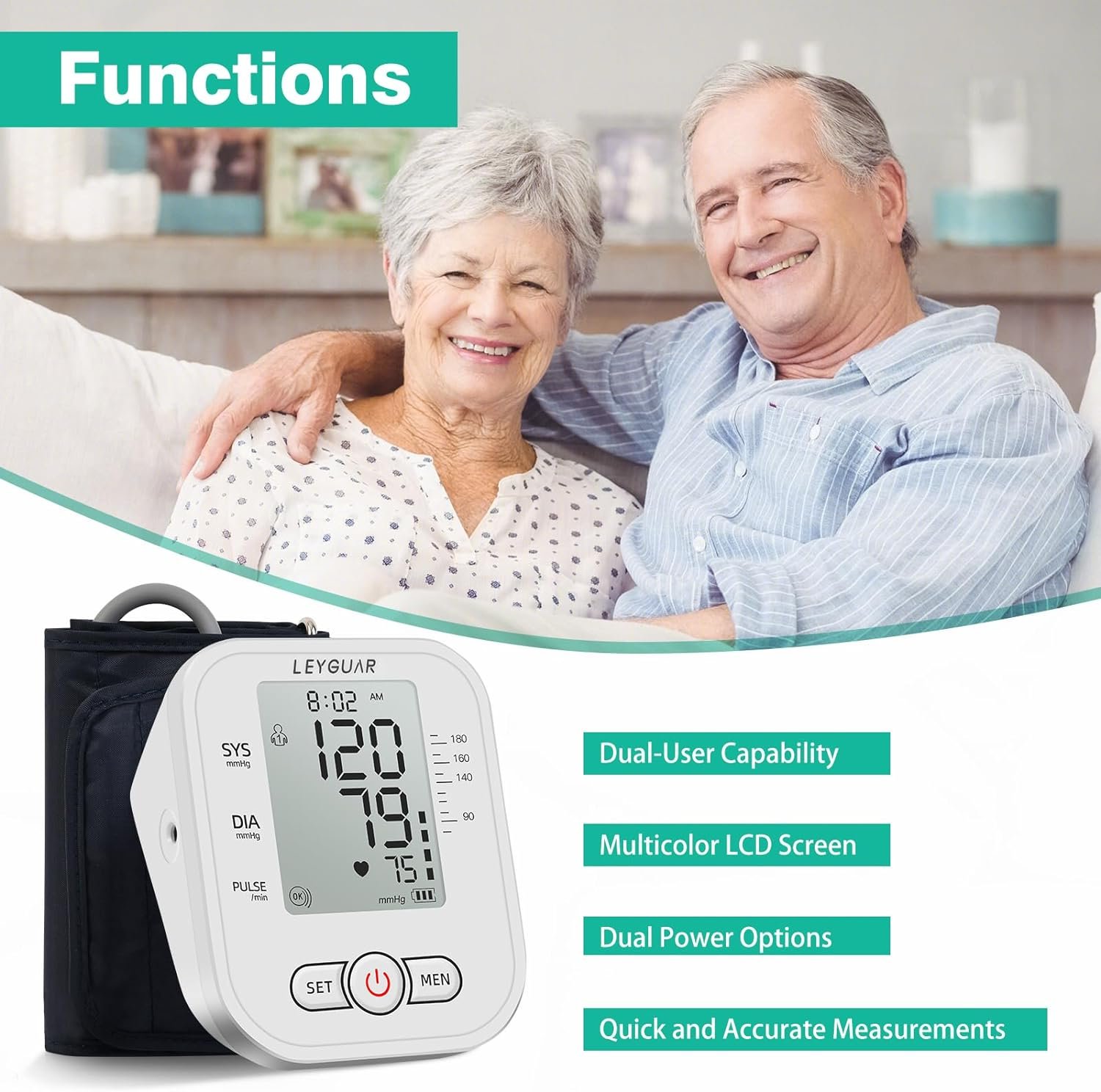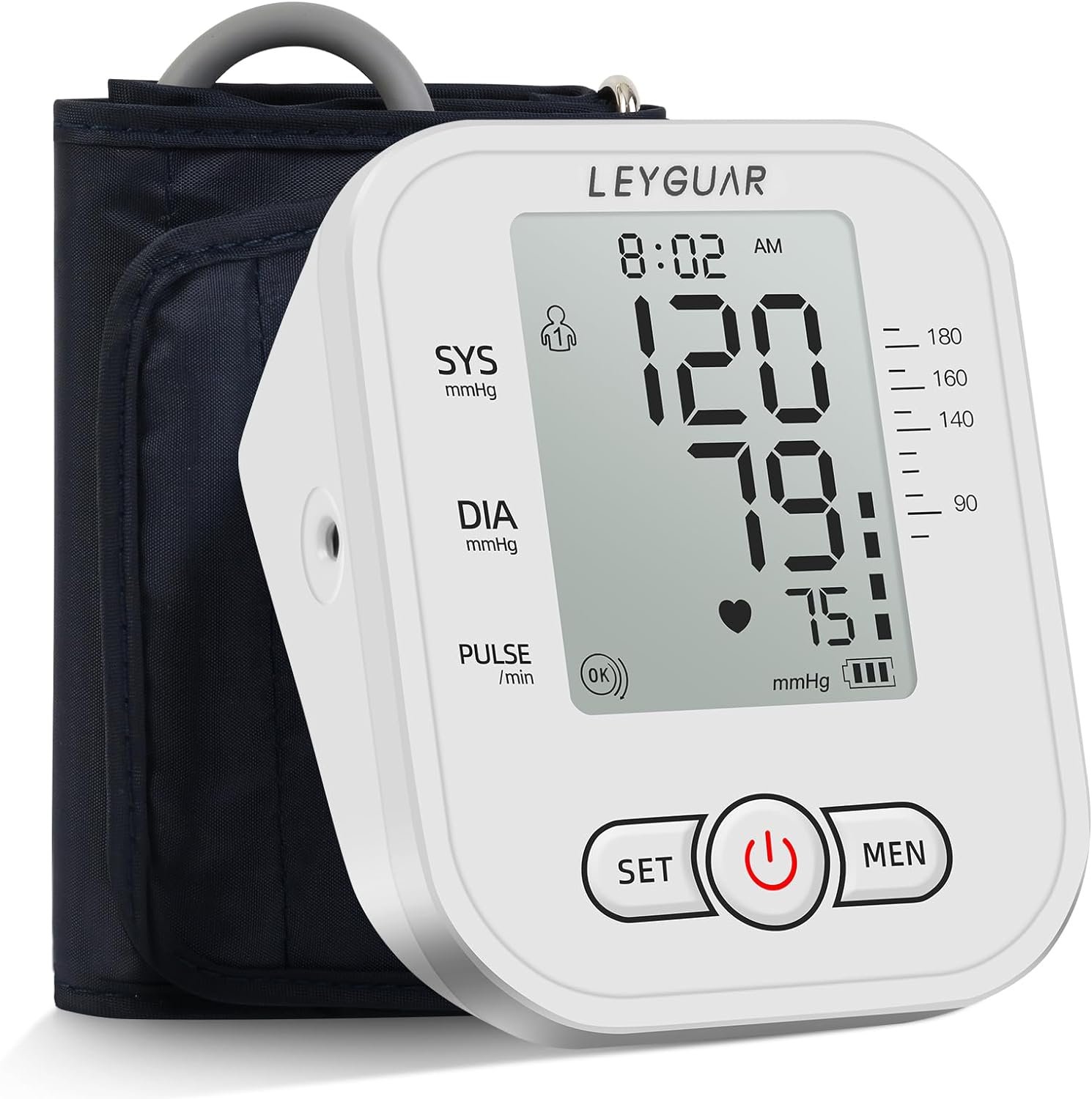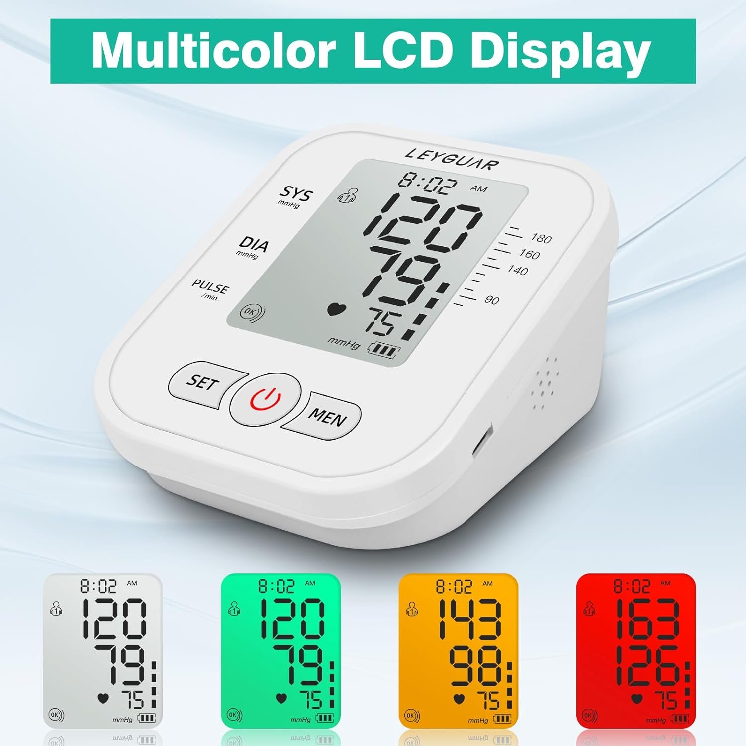 LEYGUAR Blood Pressure Monitor for Home Use, Blood Pressure Monitor with Automatic Digital BP Machine with Four-Colors Backlit Screen, Larger Upper Arm Cuff, 2×99 Memories Storage Function