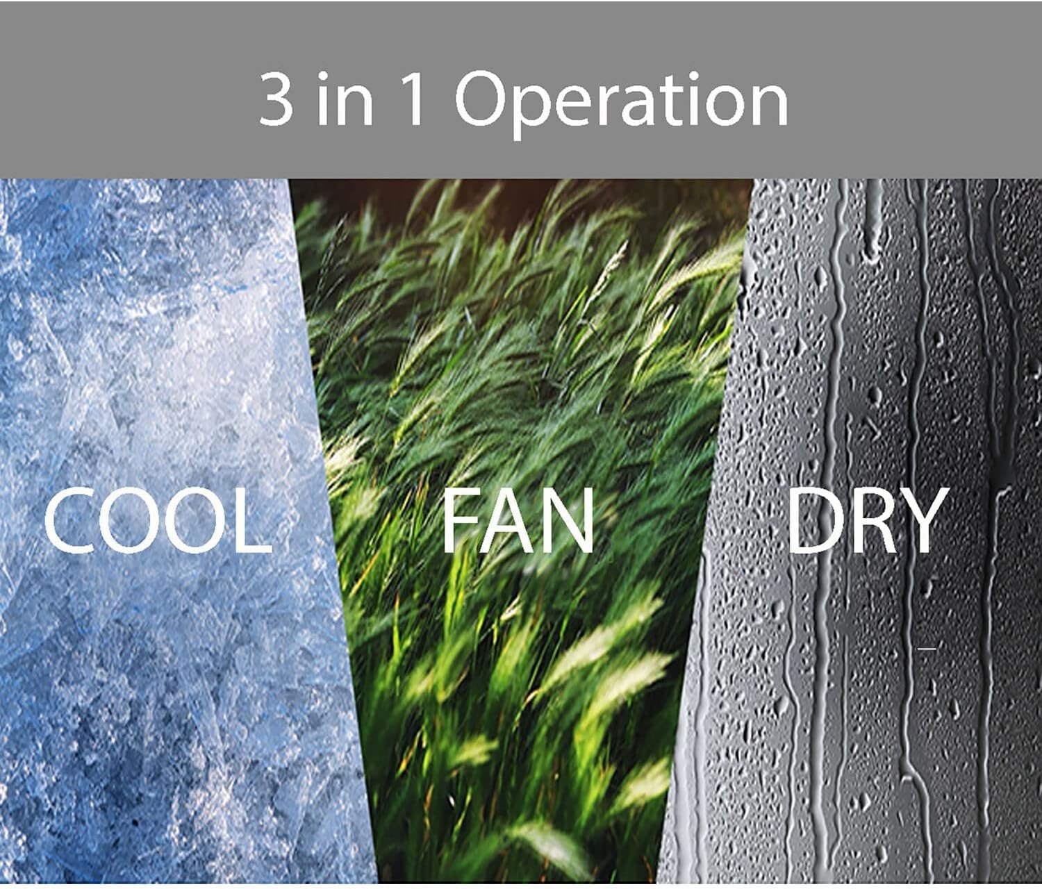 3-in-1 Operation (Cool/Fan/Dry): The portable air conditioner for home includes 3 different modes to choose from; Cool mode provides powerful cooling and dehumidifying in hot days; Fan mode circulates air and dry mode is ideal for rainy and damp days