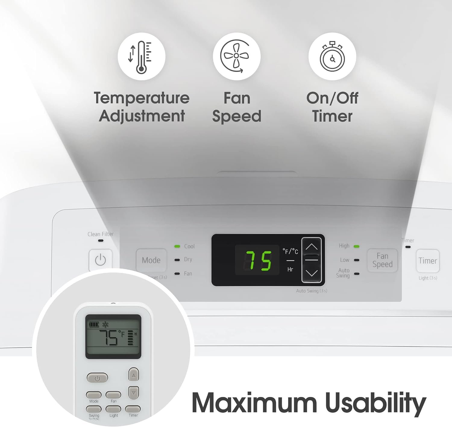 [Easy to Use & Clean] The simple remote control & top-mounted LED display with 24-hour timer allows you to precisely control the air temperature. To clean the filter, just slide it out twice a month, rinse it thoroughly under running water, & put it back. Eco-friendly R32 refrigerant