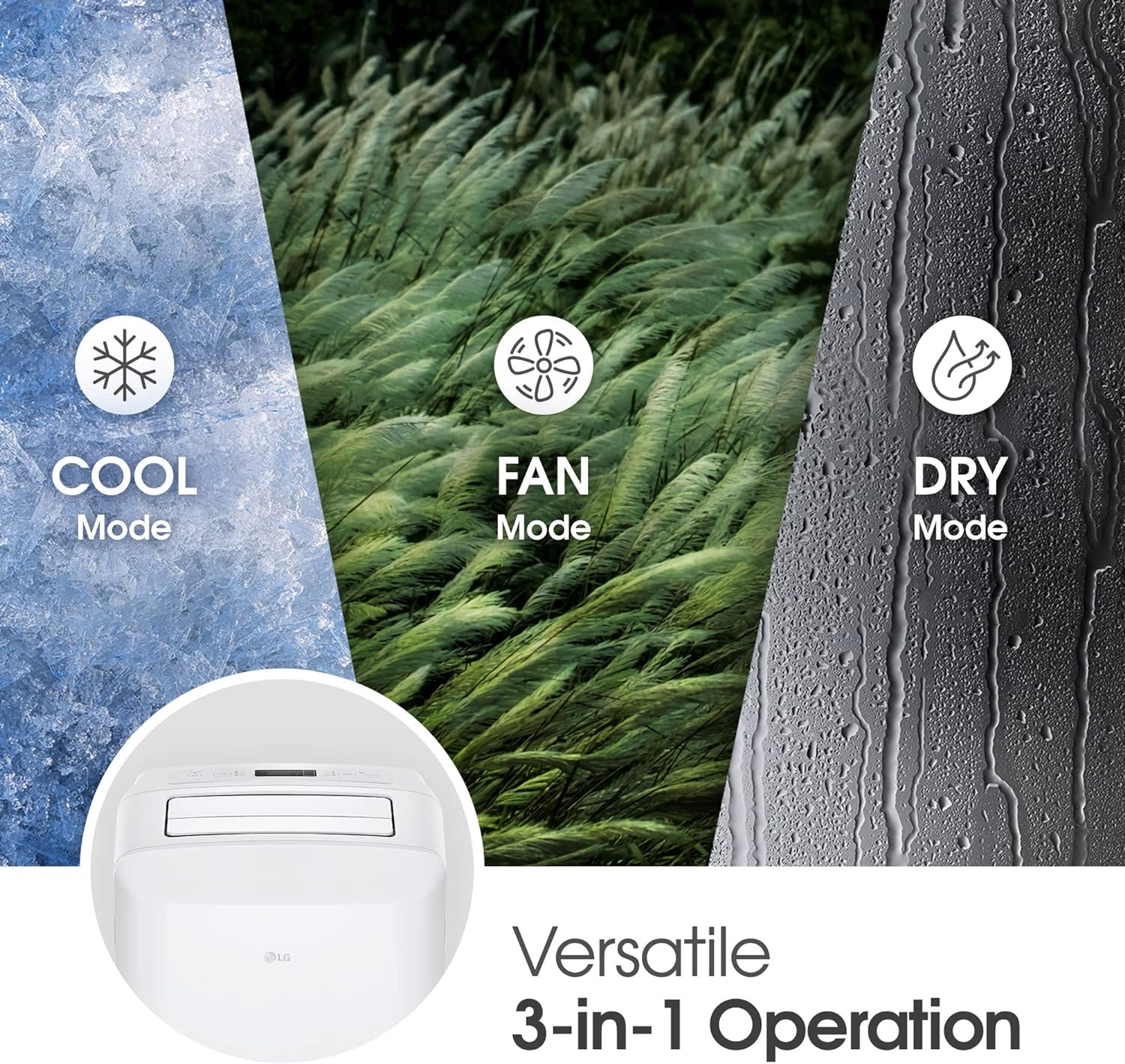[Multipurpose 3 In 1 Function] Use cool mode for powerful cooling and dehumidifying on hot days. In fan mode, the fan circulates the air in the room. Dry mode is ideal in damp environments.