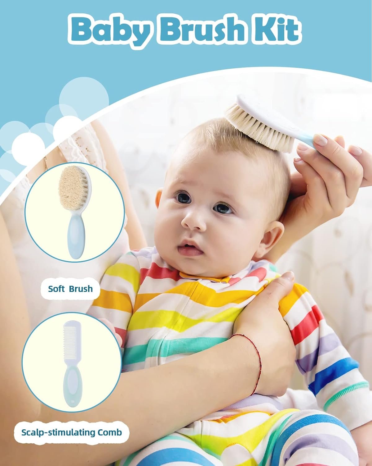 NICE BABY SHOWER GIFTS: The hair of the baby brush in the set is made of goat hair,Soft goat bristles prevent static and are very gentle on your baby’s soft spot.At the same time, the goats’ hairs have been tested hypoallergenic to the babies’ skin, and have been proven to be able to soothe babies during shower by relieving their anxieties.so this baby healthcare kit is simply a proper gift for expectant mothers, also suitable newborn gift; Moreover, it’s gender-neutral, suitable for most baby.
