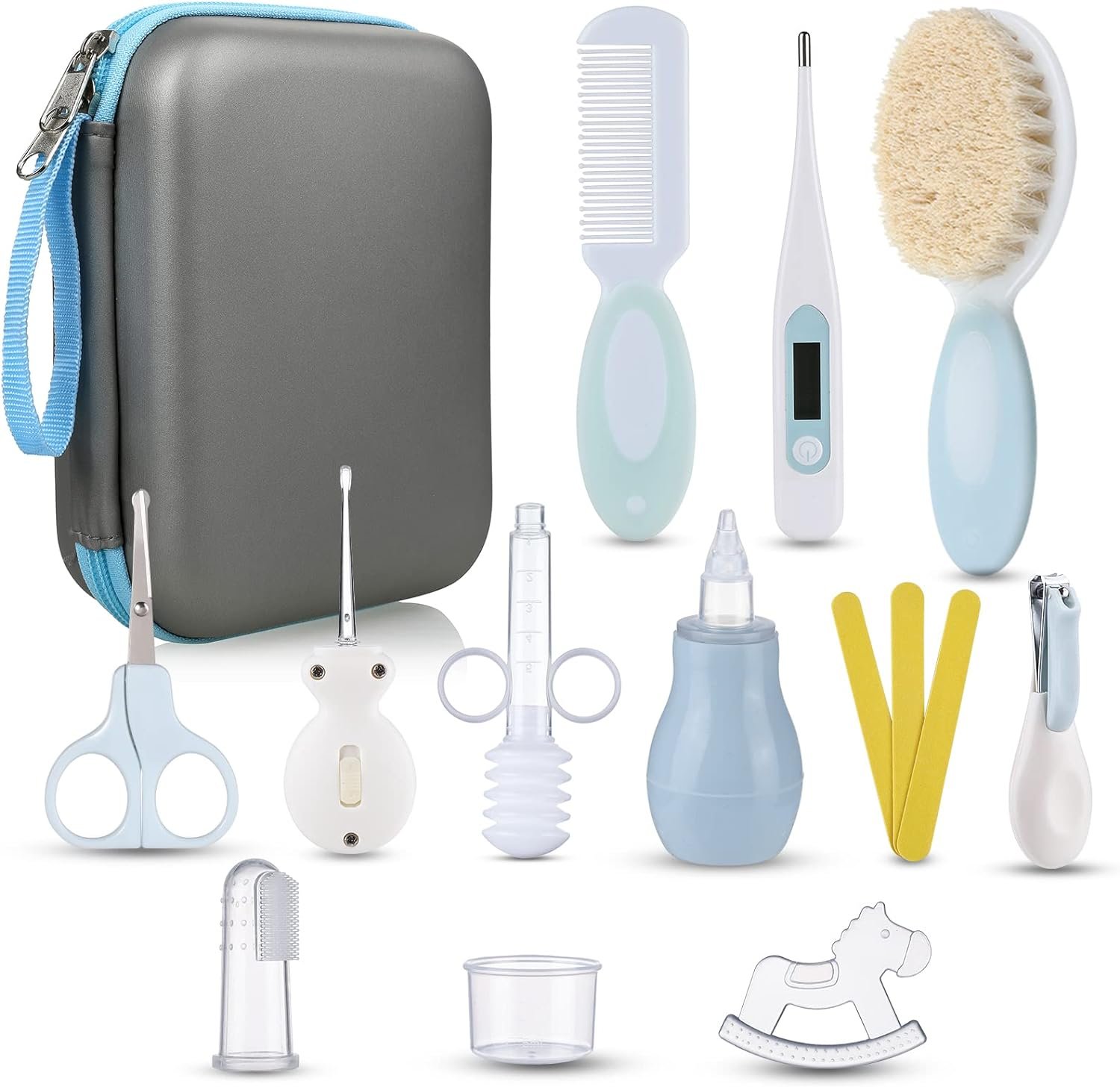Lictin Baby Grooming Kit 15PCS Baby Health Care Set Portable Baby Travel Kit, Safety Cutter Baby Nail Kit for Nursing Baby Girl Boys Heath and Grooming (Blue)