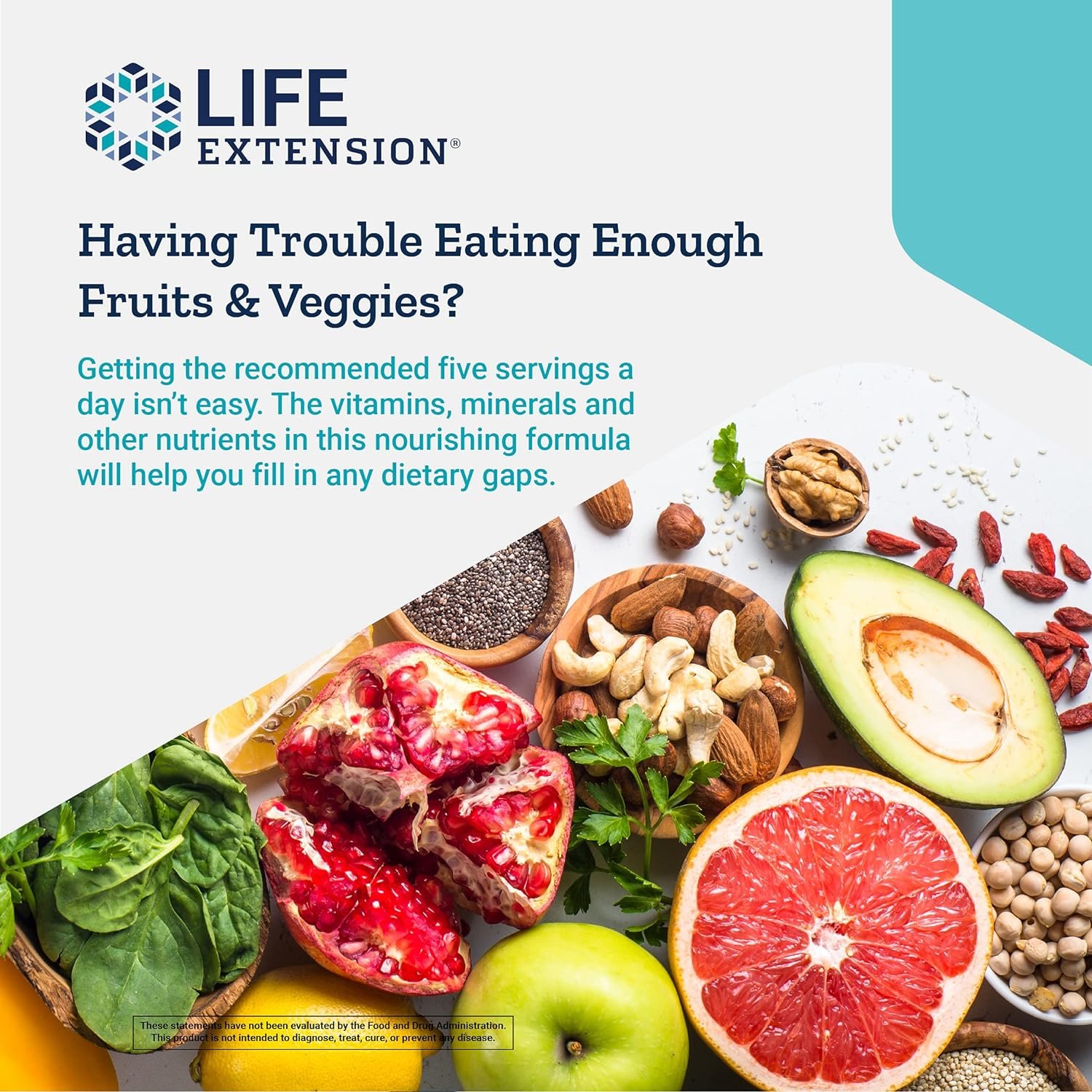 GET YOUR FRUITS & VEGGIES – Studies show that people who eat the most fruits and vegetables enjoy long, healthy lives. But what if getting the recommended 5 daily servings isn’t on the menu? Every daily dose of Life Extension Mix gives you an extensive array of nutrients, including standardized fruit and vegetable extracts.