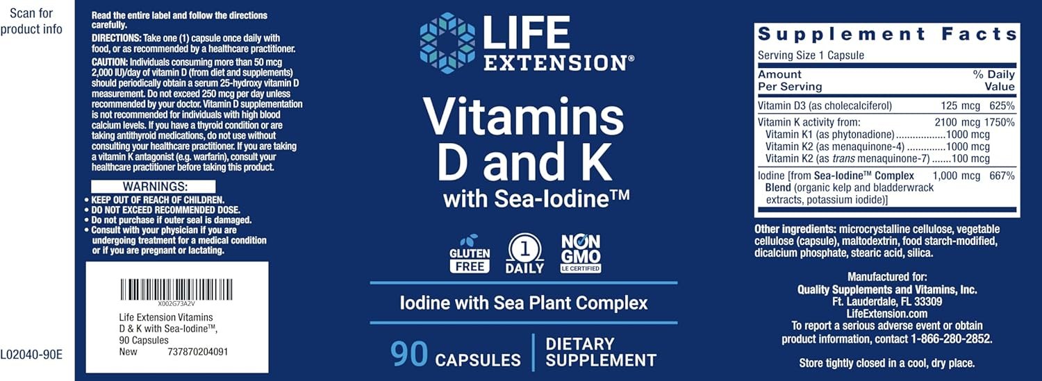 ✅ 90 CAPSULE BOTTLE: LifeExtension D3, K with Iodine Supplement