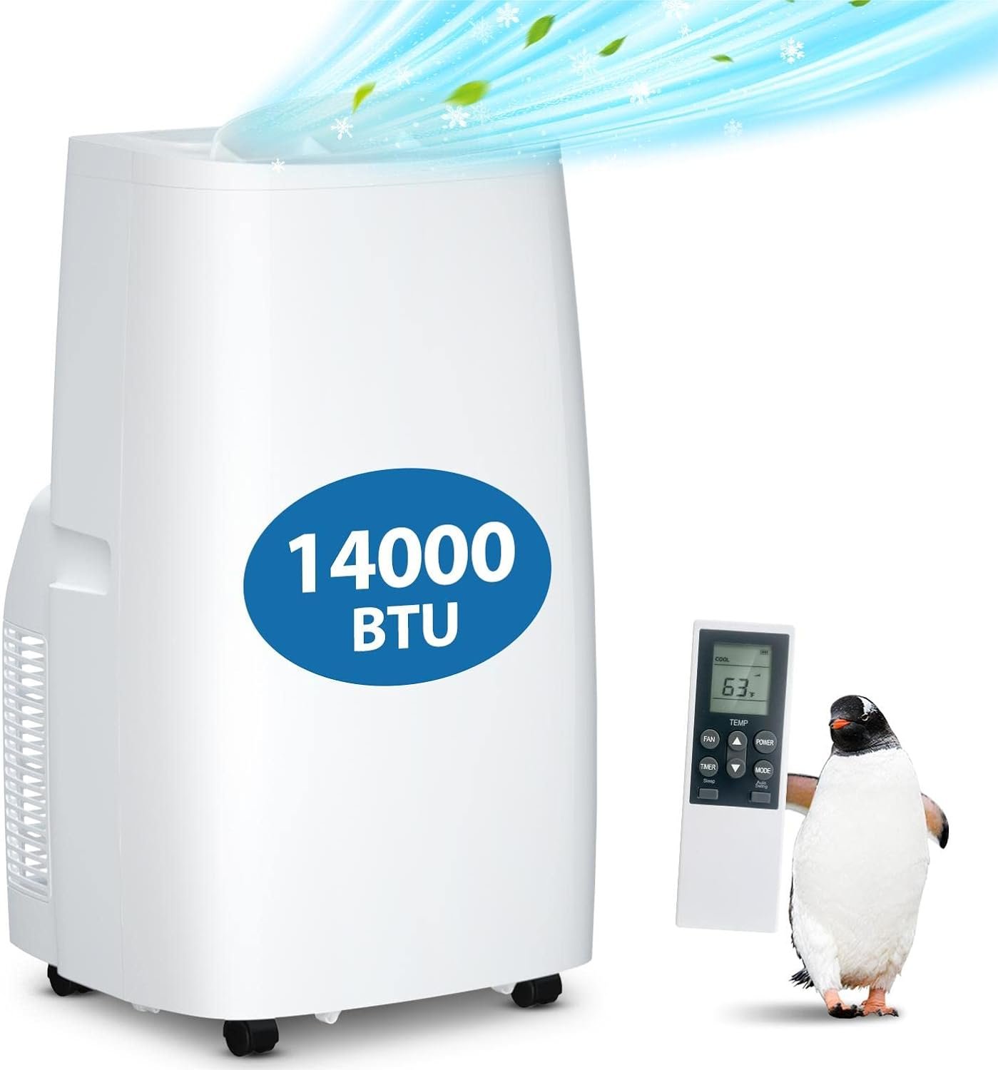 [Powerful Cooling Effect]-This portable air conditioner has a powerful 14000 BTU cooling capacity and can provide 62-86 °F cooling within a 500 sq ft area. 90° adjustable air outlet helps to evenly distribute powerful cold air, to keep you cool and comfortable throughout the summer.