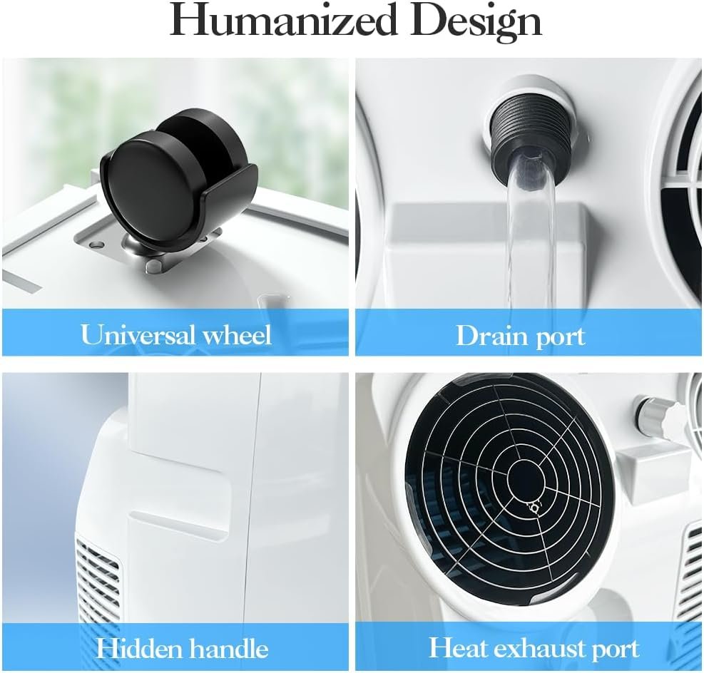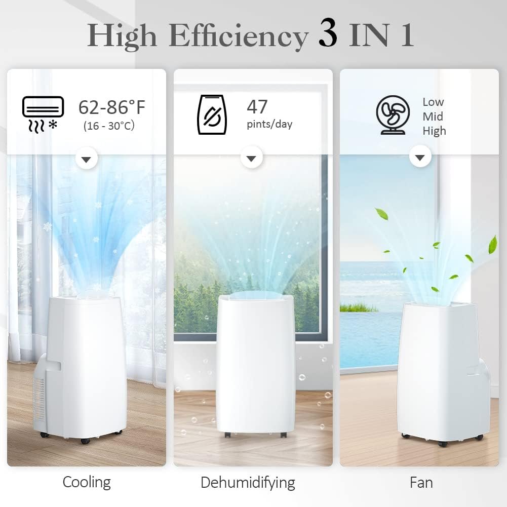 [3-In-1 Function]-The portable ac unit integrates a fan, a dehumidifier, and an air conditioner. Meet your cooling and ventilation needs while helping to reduce humidity, collect moisture and release fresh air. No matter what climate you are in, you can keep your home comfortable.