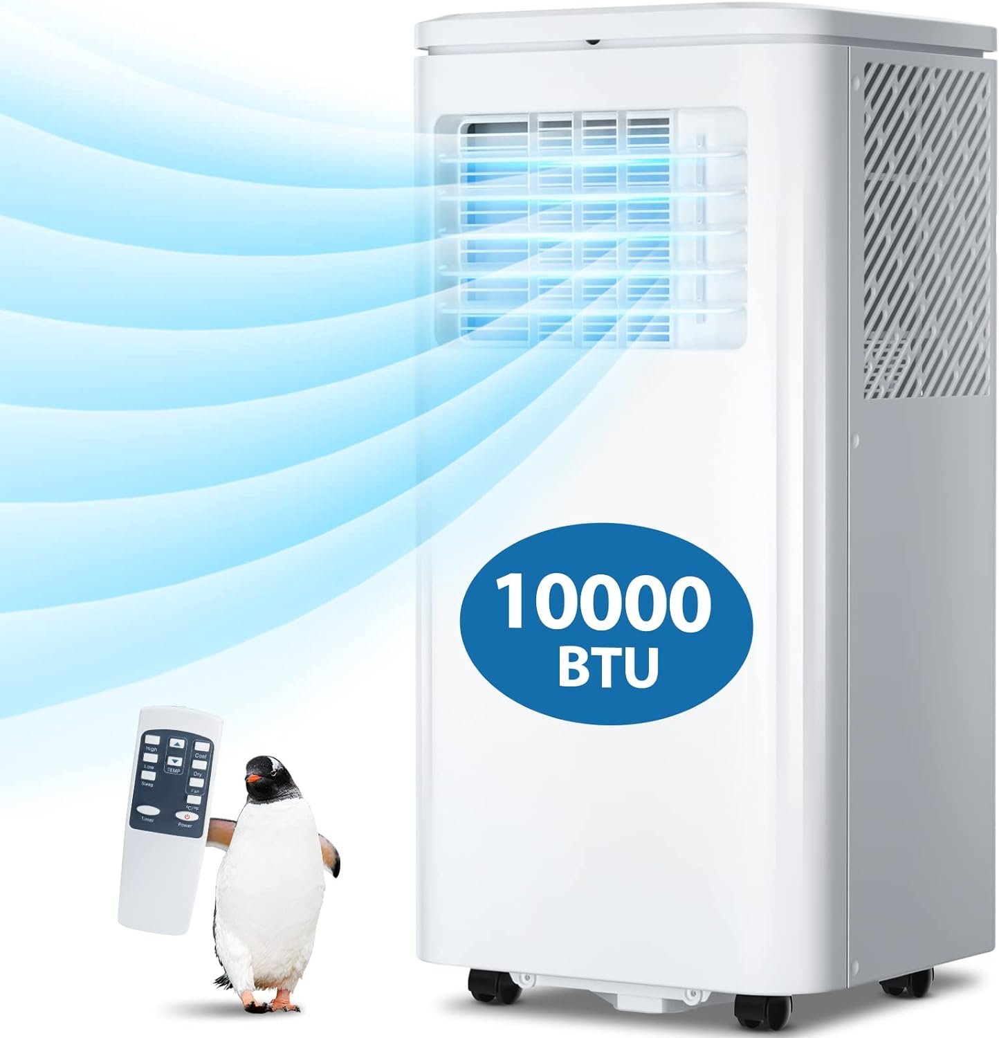 Powerful Cooling Effect: This portable air conditioner has a powerful 10,000 BTU cooling capacity and can provide 62-86 °F cooling within a 300 sq ft area. Adjustable vertical window helps to evenly distribute powerful cold air, to keep you cool and comfortable throughout the summer.