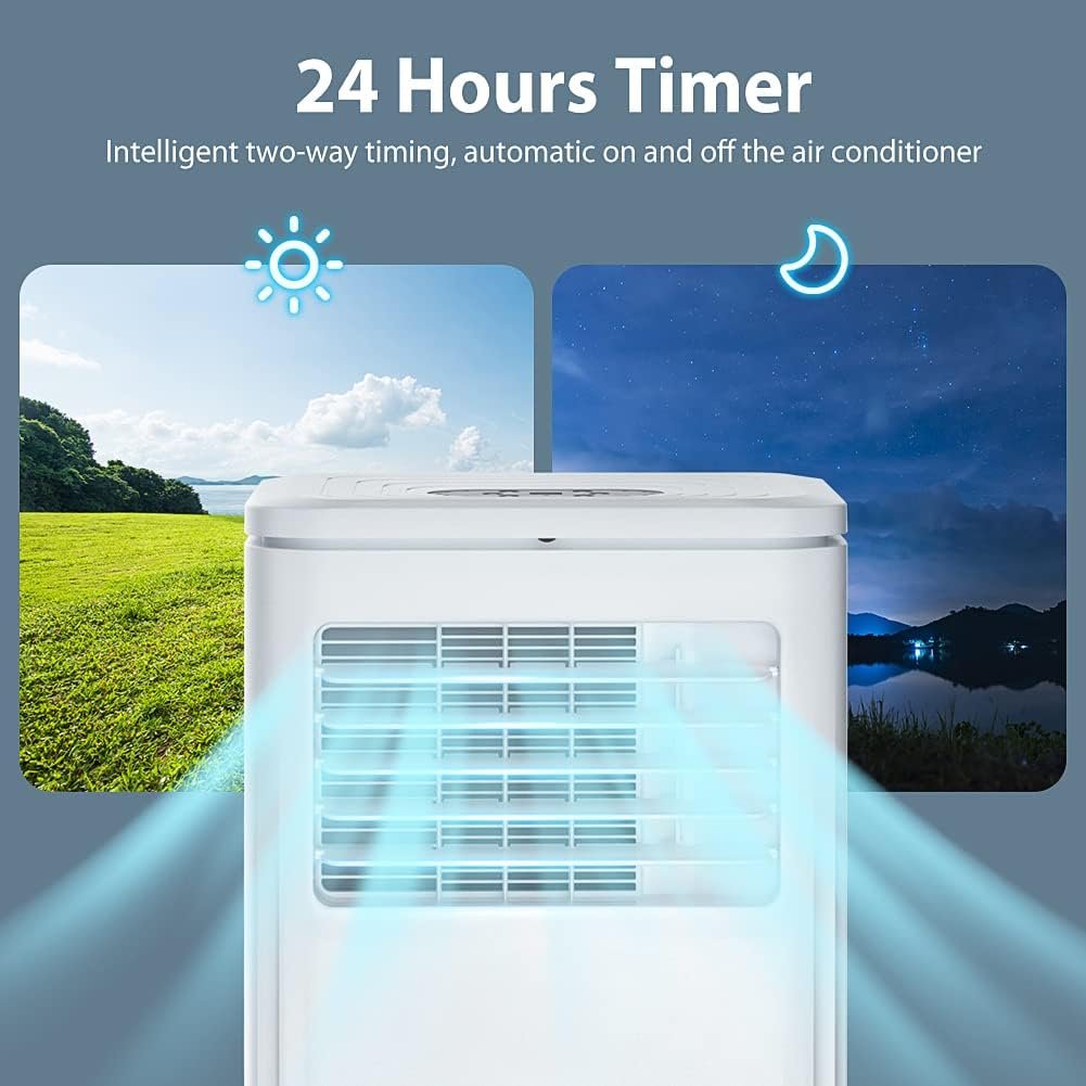 Convenient to Use: The remote control and 24-hour timing design make portable ac conditioner more easy to use, and you can customize your personal needs. With a lightweight, convenient and stylish body design, it can be used in the bedroom, living room, kitchen or garage at home or office