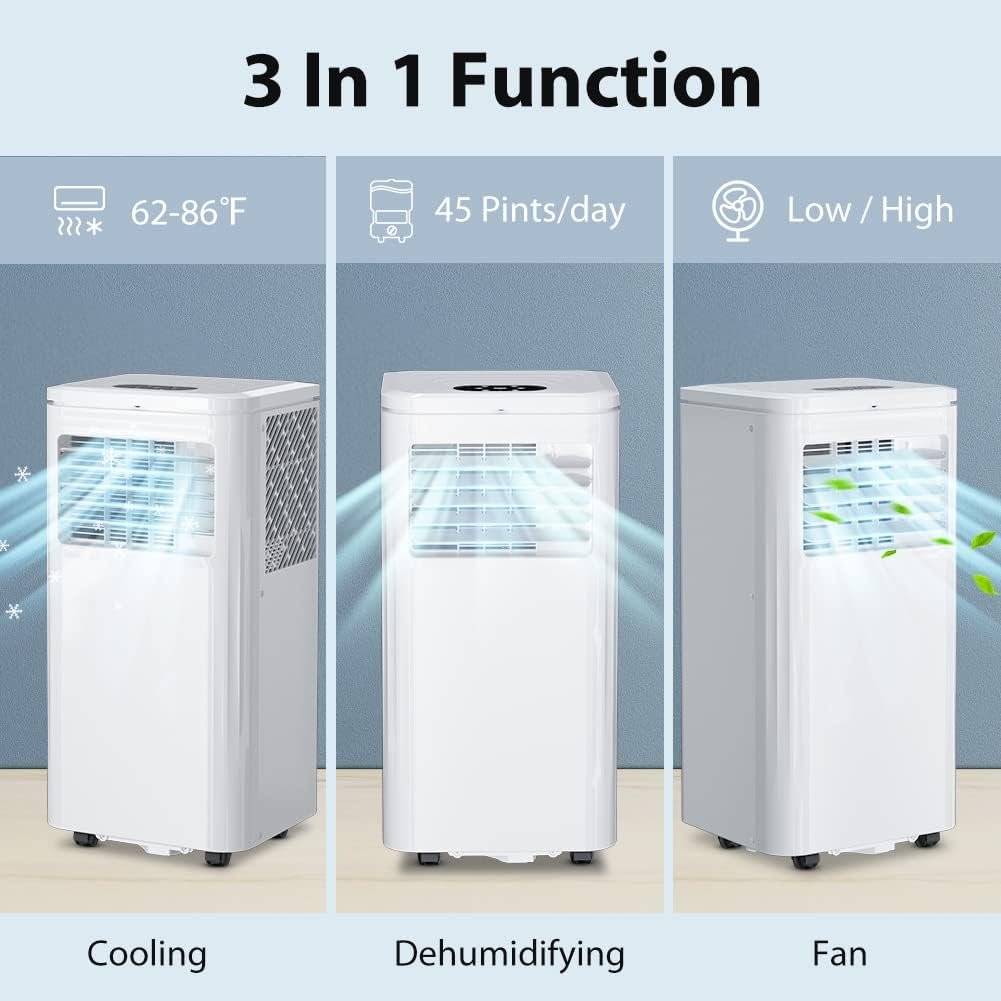 3-In-1 Function: The portable ac unit integrates a fan, a dehumidifier, and an air conditioner. Meet your cooling and ventilation needs while helping to reduce humidity, collect moisture and release fresh air. No matter what climate you are in, you can keep your home comfortable.