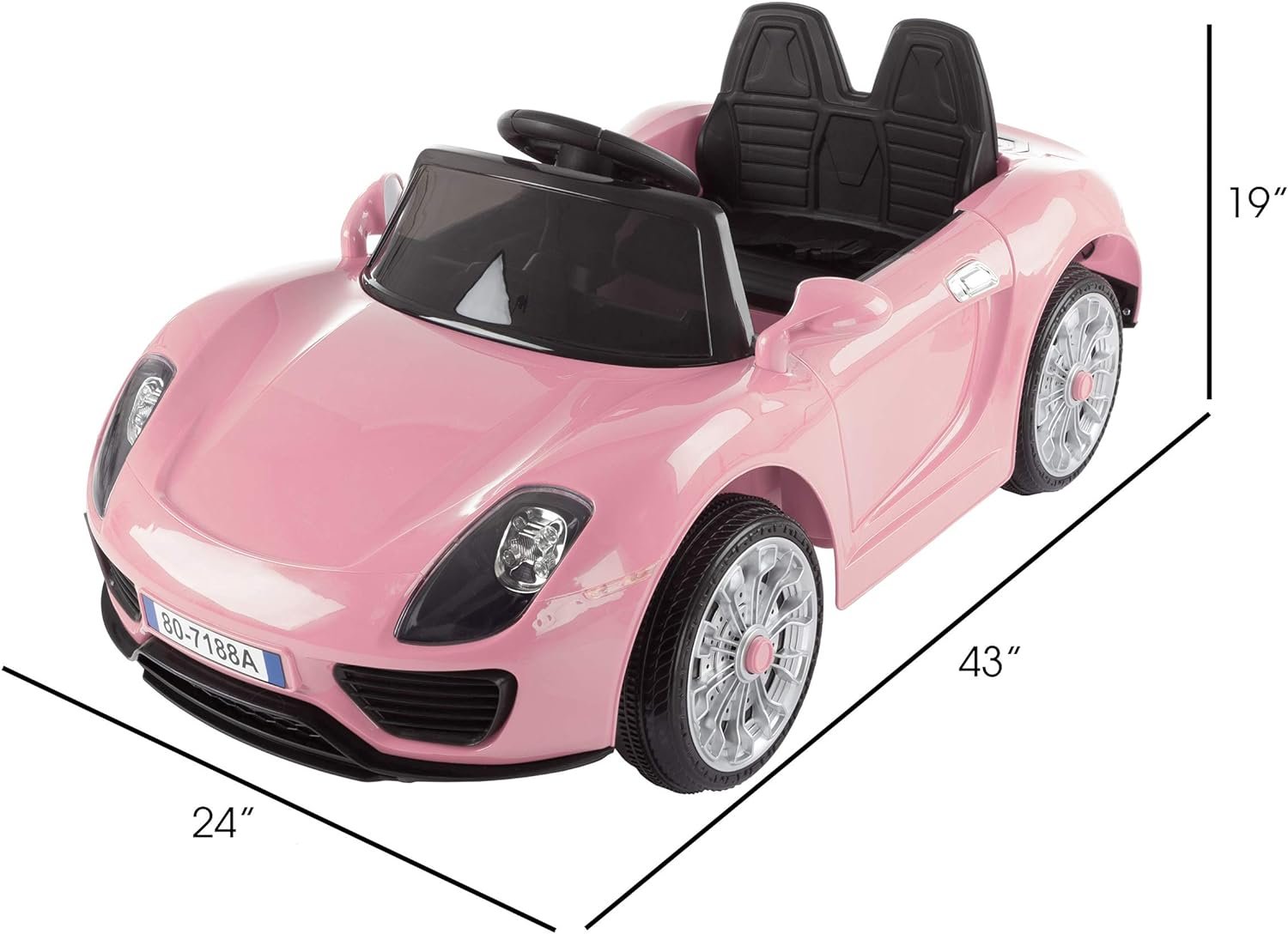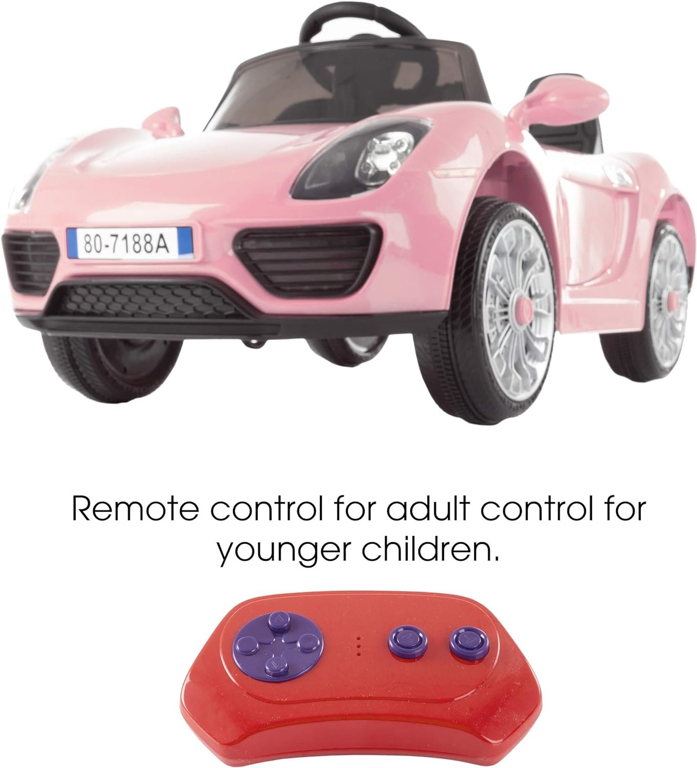 Your little ones will be ready to hit the open road with the sporty coupe style Kids Ride On Car with Remote Control by Lil’ Rider. The kids electric car has both forward and reverse functions, headlights, an auxiliary port to play a MP3 device or USB, sound effects, a safety belt, a rechargeable 6V battery, and cruises at 2.6 miles per hour, so your kids will travel at a safe speed. The flashy looking kid car allows parents to fully operate the car or assist their child as they learn to drive with the included remote control. Made from rugged high-quality plastics and trimmed in chrome coloring, this electric car will surely become your child’s preferred method of transportation!