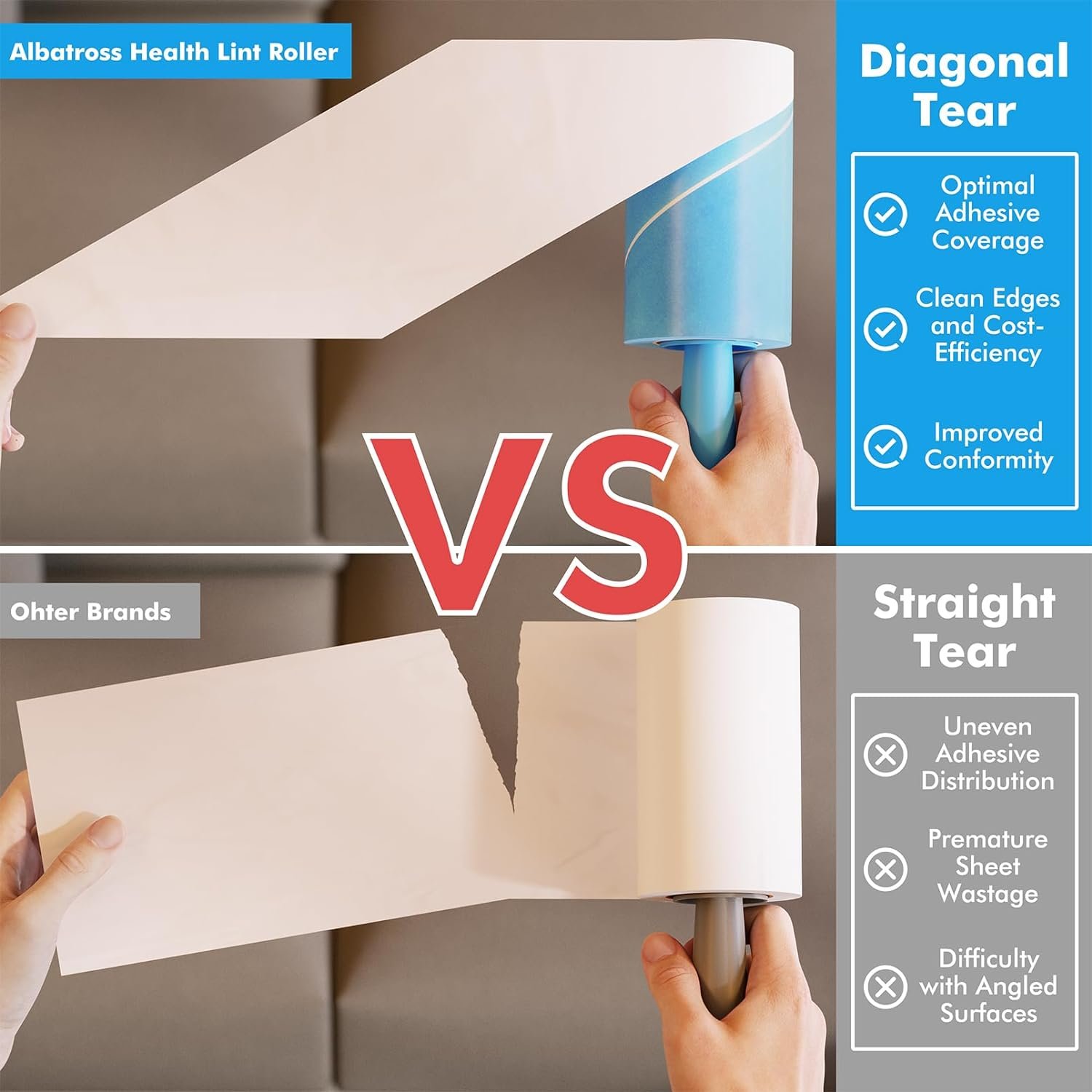 Easy Tear Design: The lint roller for travel sticker with the diagonal peel design will not get stuck when rolling, you can smoothly peel off each sticker, easy to replace next new sheets.