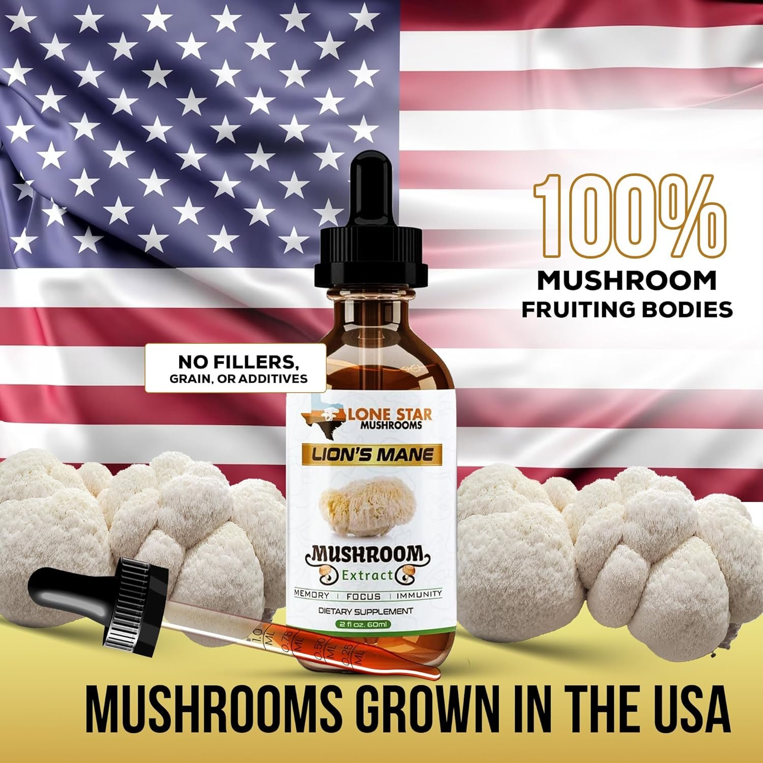 Lions Mane Dual Liquid Extract/Tincture | Organic Fruiting Bodies only | Grown in USA | Highly Concentrated | Memory, Focus, Immunity | No Grain/Filler