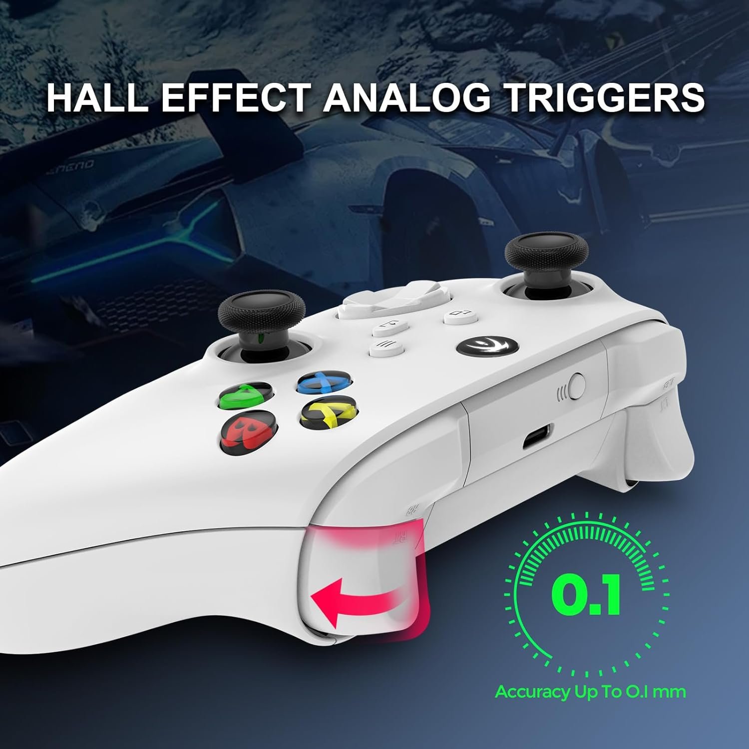 【HALL LINEAR TRIGGER】The gamepad uses Hall linear triggers for increased precision, increased speed control and sensitivity over your in-game actions.Experience the realism of throttle from low to high when playing racing games, bringing a better gaming experience.