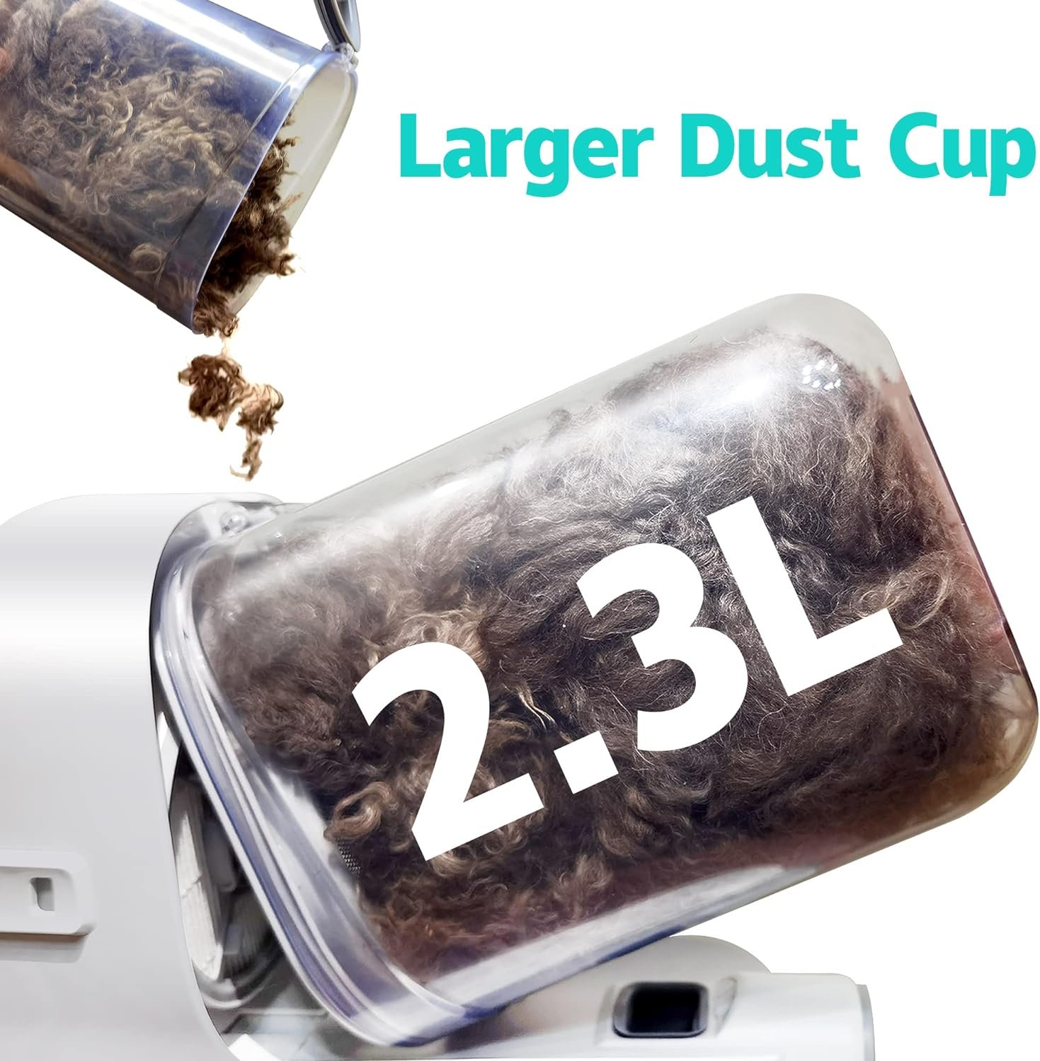 🐶【2.3L Larger Dust Cup】➖ The larger jar storage capacity can reduce the number of times you dump your pet hair. This is fantastic because you can brush her inside without fur flying everywhere, instead it goes directly in the canister. It is also very simple to disassemble and clean.