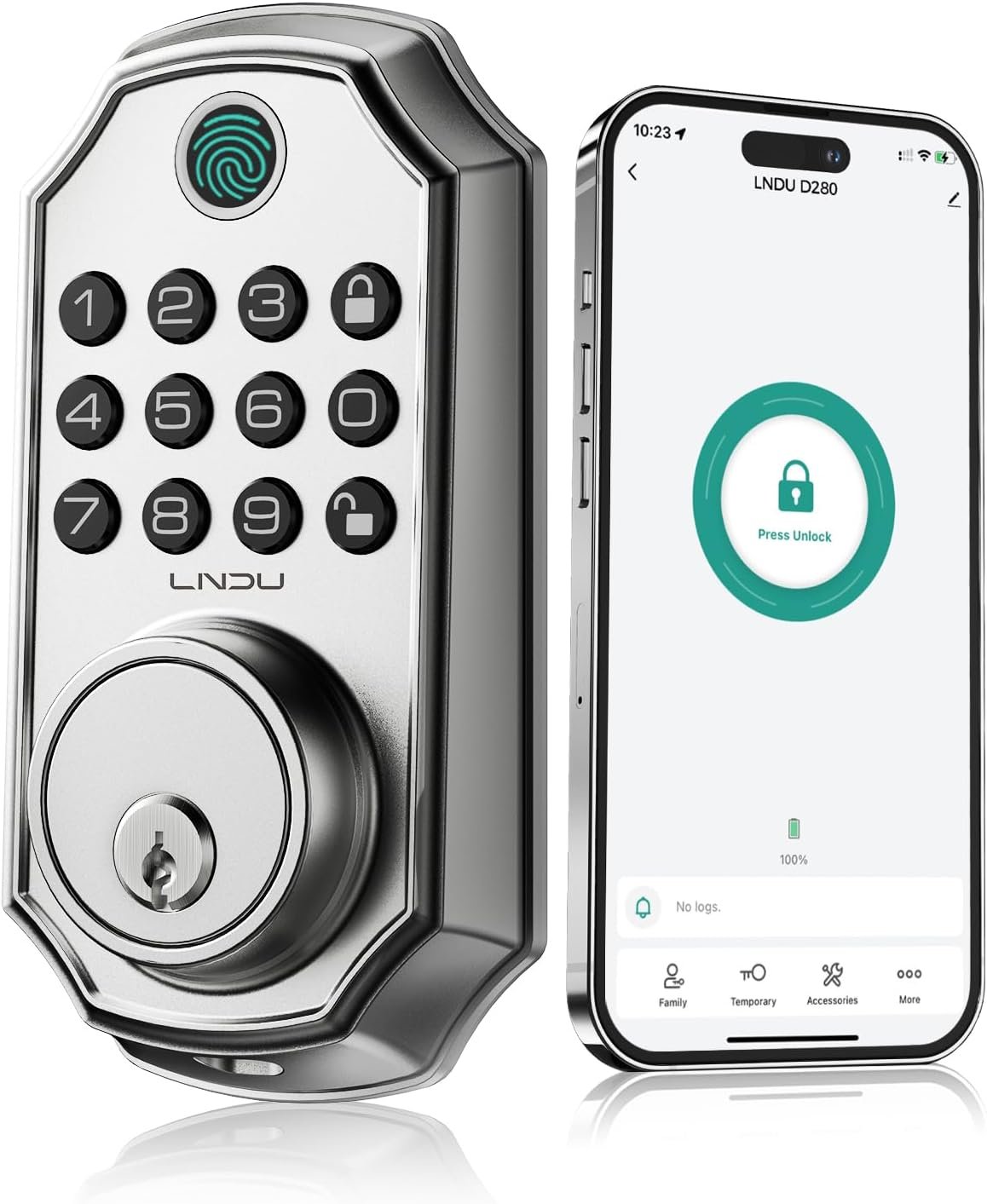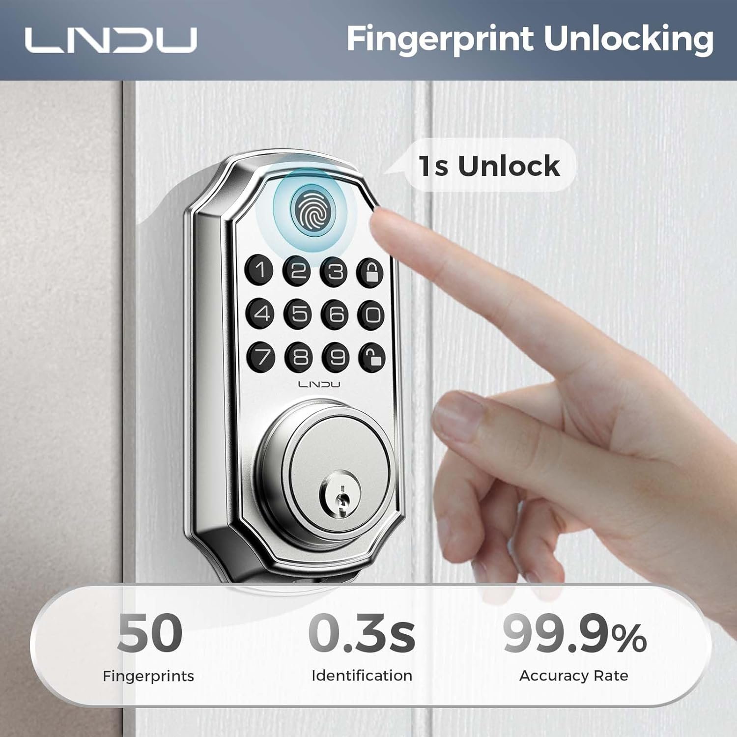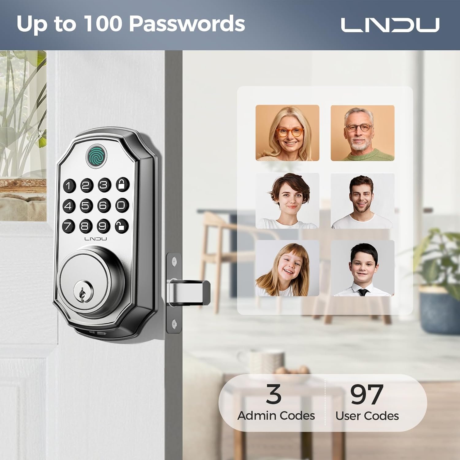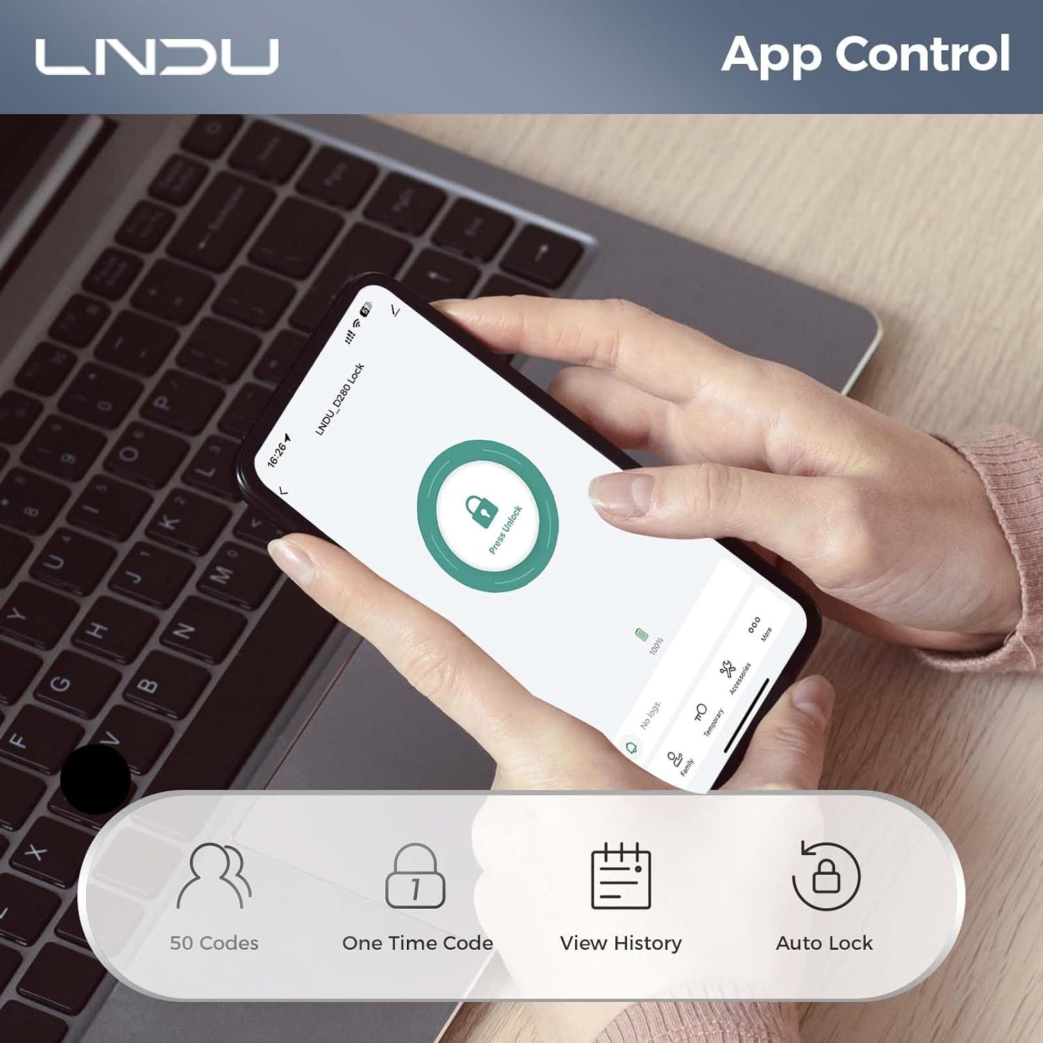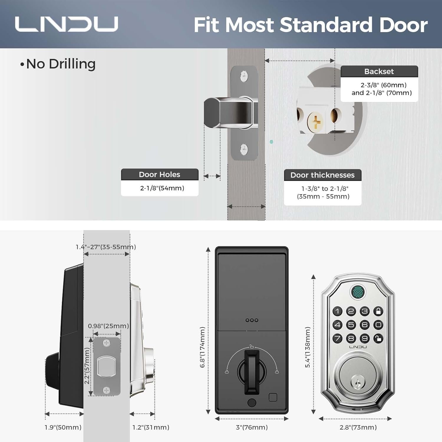 Anti-Peeking Password: LNDU door locks for front door support up to 16 digital passcodes. Users could unlock the door by entering 10~6 virtual digits before or after the 6~10 real password.