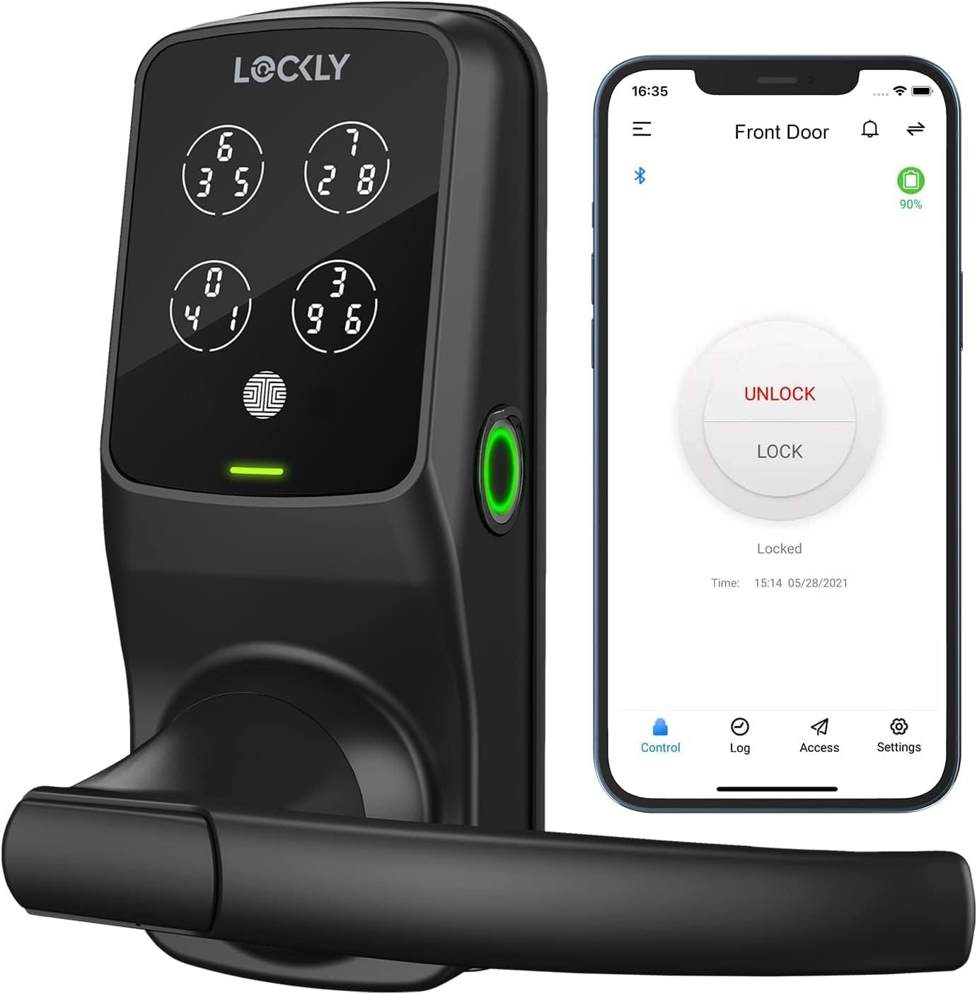 Lockly Secure Plus Latch, Bluetooth Smart Lock with Handle, Keyless Entry Door Lock, PIN Genie® Keypad, 3D Biometric Fingerprint Sensor, Auto Lock – Matte Black (PGD628FMB)