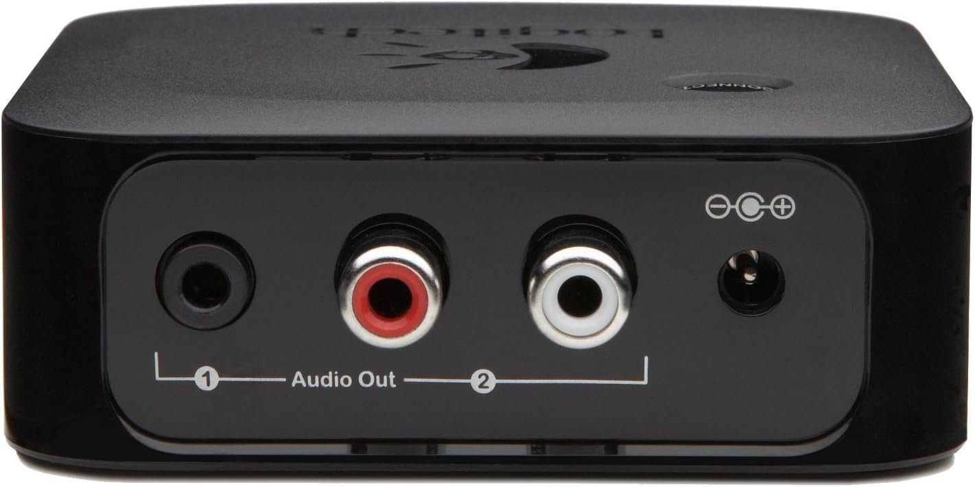 Plug the adapter into any A/V receiver or bookshelf system using standard RCA or 3.5 mm jacks