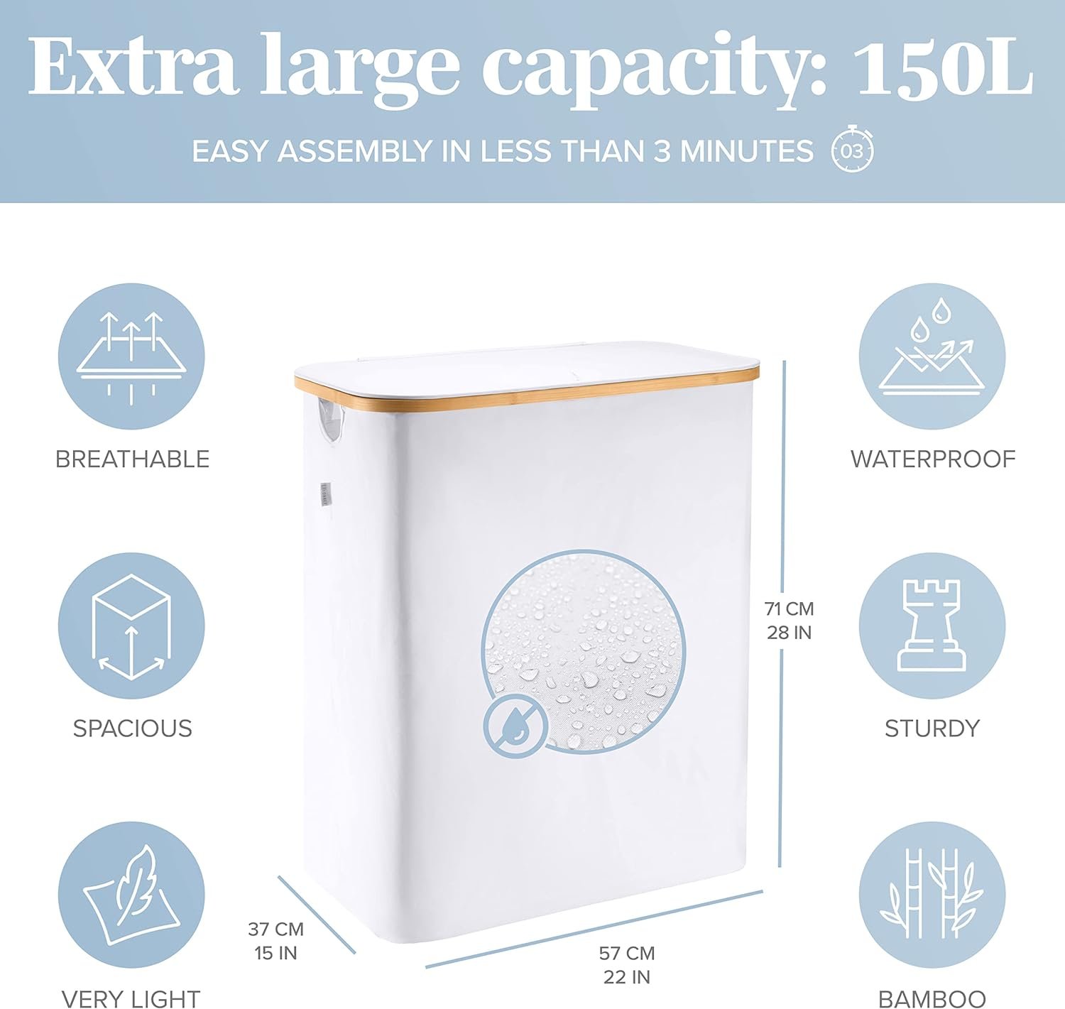 STYLISH HARMONY OF BAMBOO AND FABRIC: Elevate your space with our meticulously designed laundry hamper, seamlessly merging bamboo’s strength with fabric’s refined touch. Striking a perfect balance between style and functionality, this contemporary piece enhances any room’s elegance with a timeless allure.