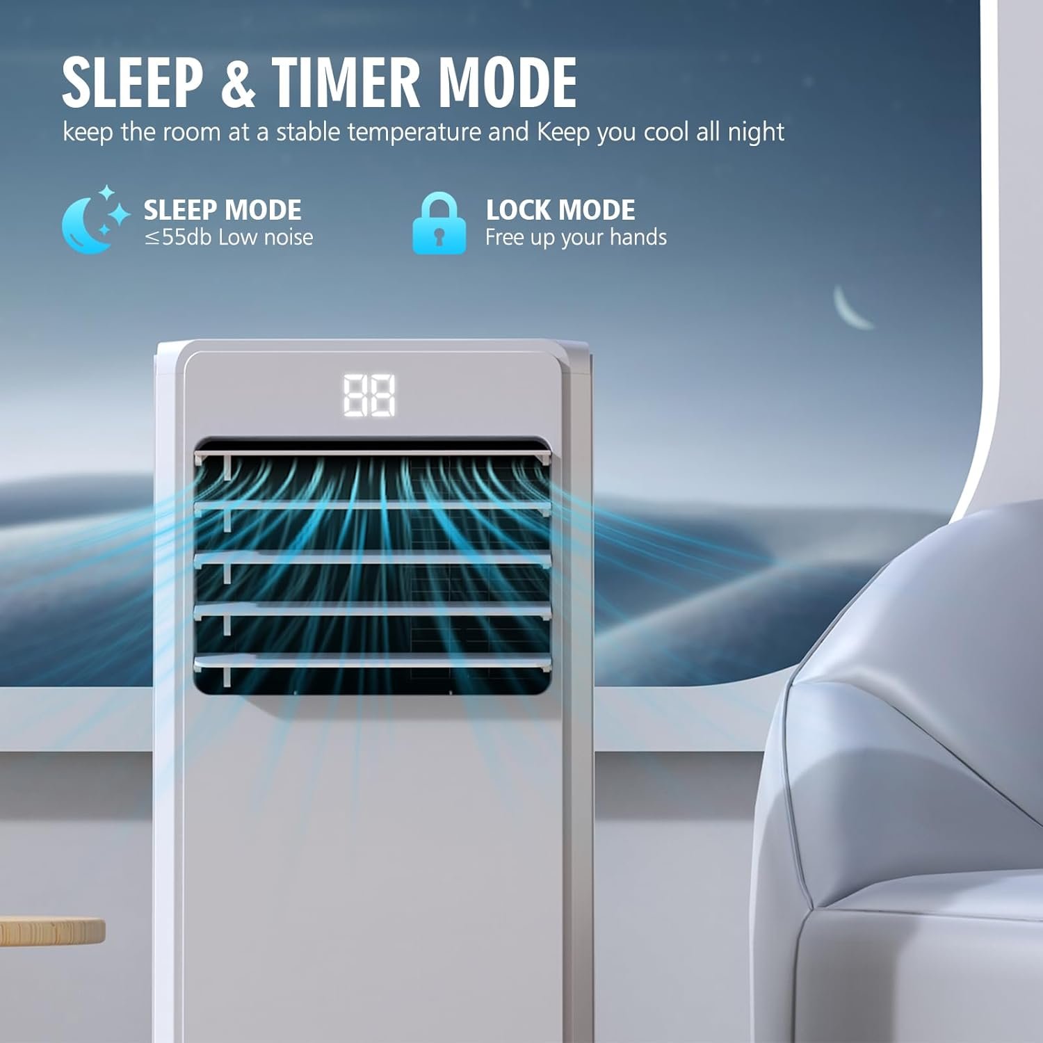 ❄️【Sleep & Lock Mode】When the portable AC is set to sleep, the wind speed automatically turns to low wind, and its low noise level won’t affect your sweet dream. You can also control the child lock state entry and release. After entering the child lock state, all other key operations are invalid.