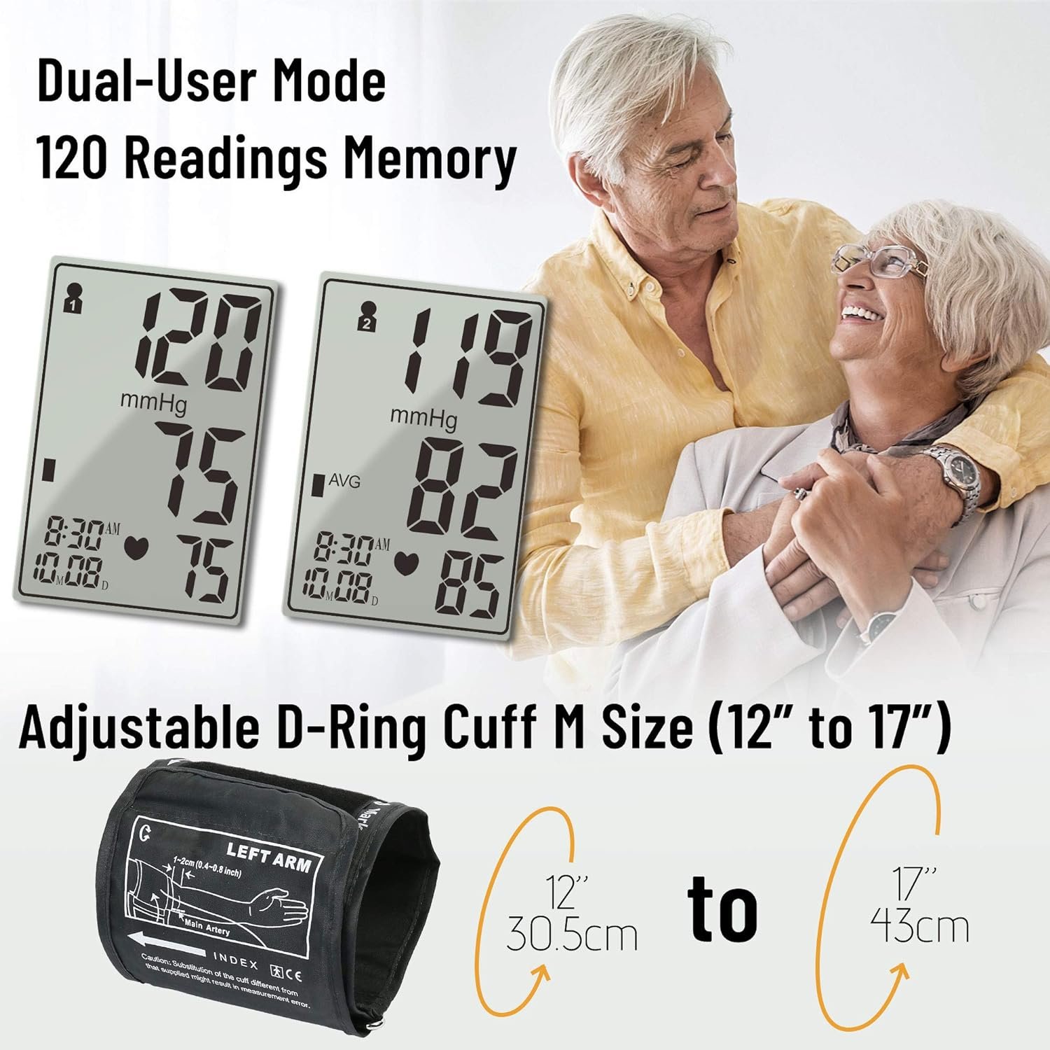 120 MEMORY & 2 USERS MODE: Our BP machines can be switched between two individuals, each user for 60 readings records with date & time stamp respectively. Ideal for senior couples with hypertension or arrhythmia to track their health status