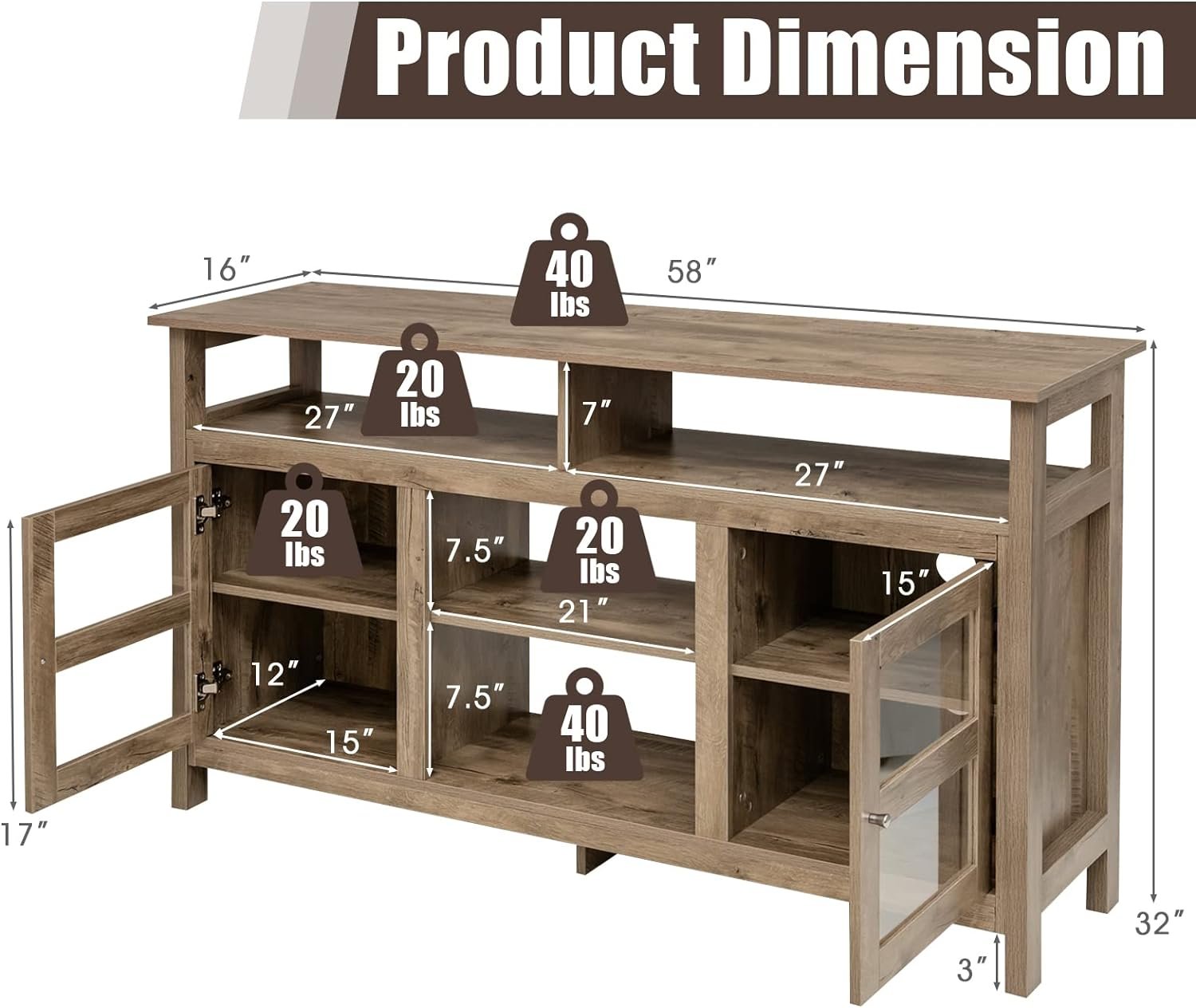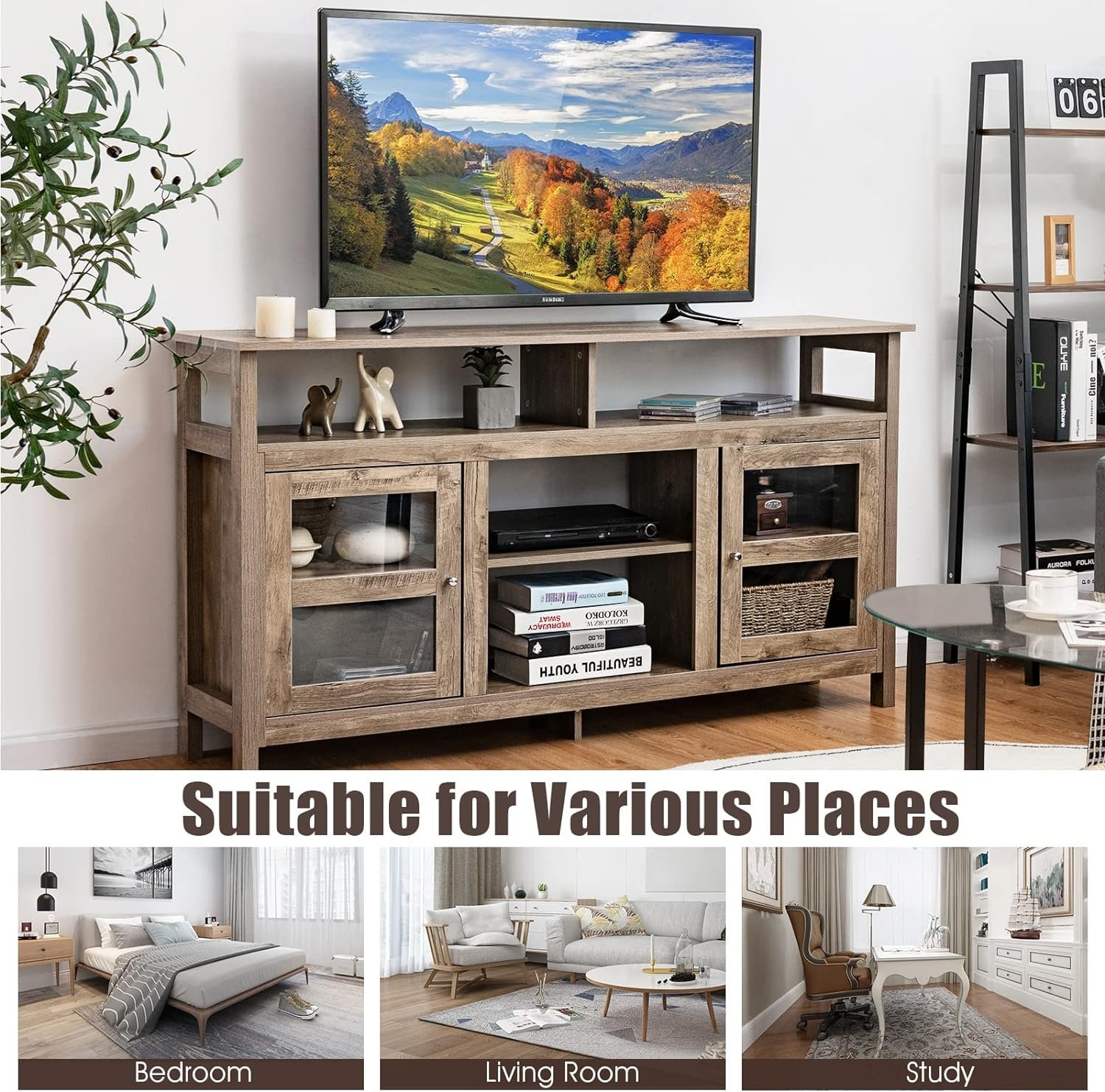 2-in-1 Design with Detachable Middle Shelf: The middle shelf of the farmhouse TV stand is removable. You can disassemble the shelf and install an 18-inch fireplace (not included) to enjoy the warm winter with your family. The farmhouse TV cabinet can also be placed in the kitchen, bathroom, etc. and used as a storage cabinet.