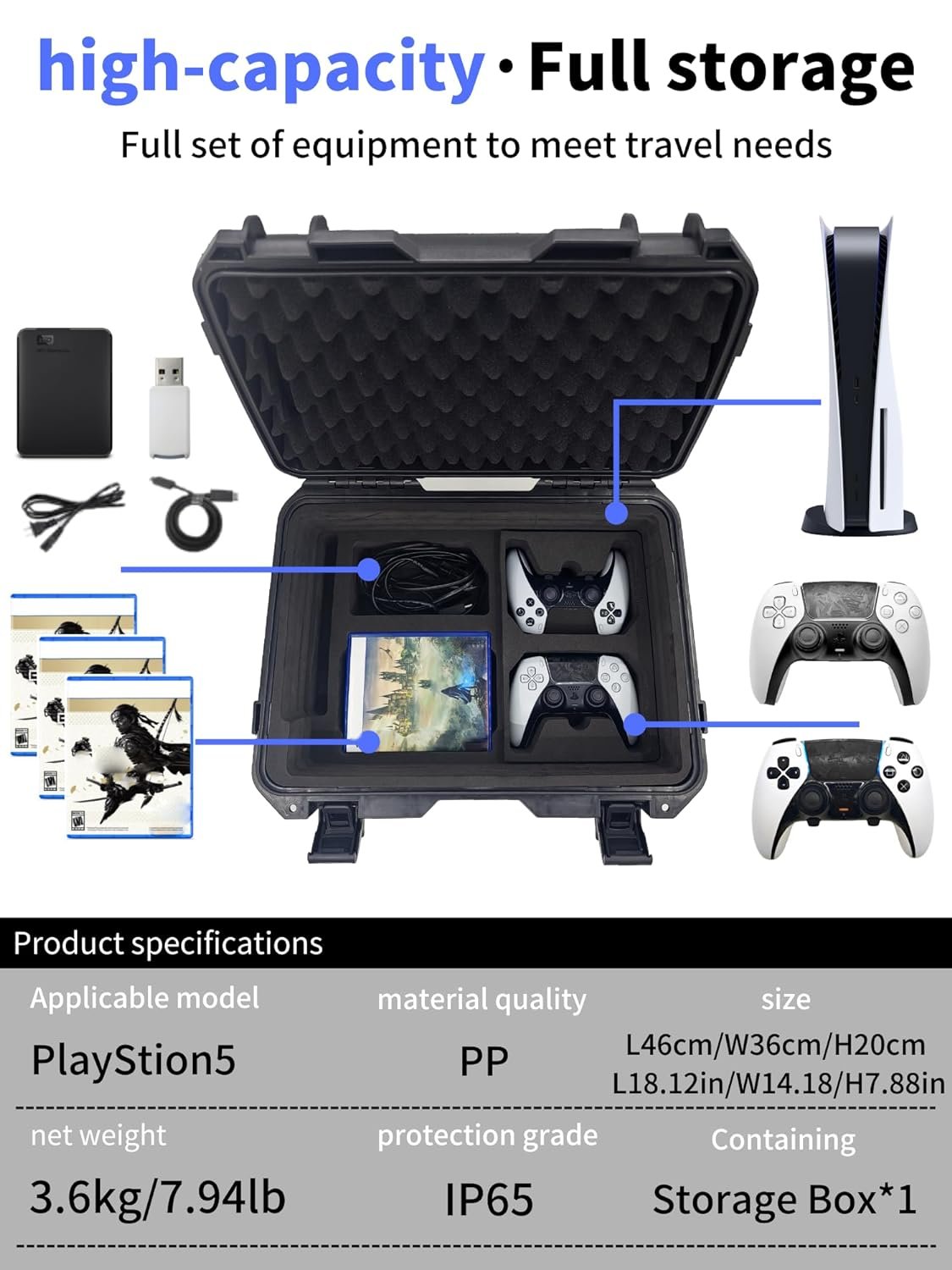 【Airtight and Waterproof】 Protect your PlayStation 5 digital edition or standard console with this waterproof hard shell travel case that also has an airtight seal to keep it safe from the elements. Gives you peace of mind no matter what conditions you’re in.