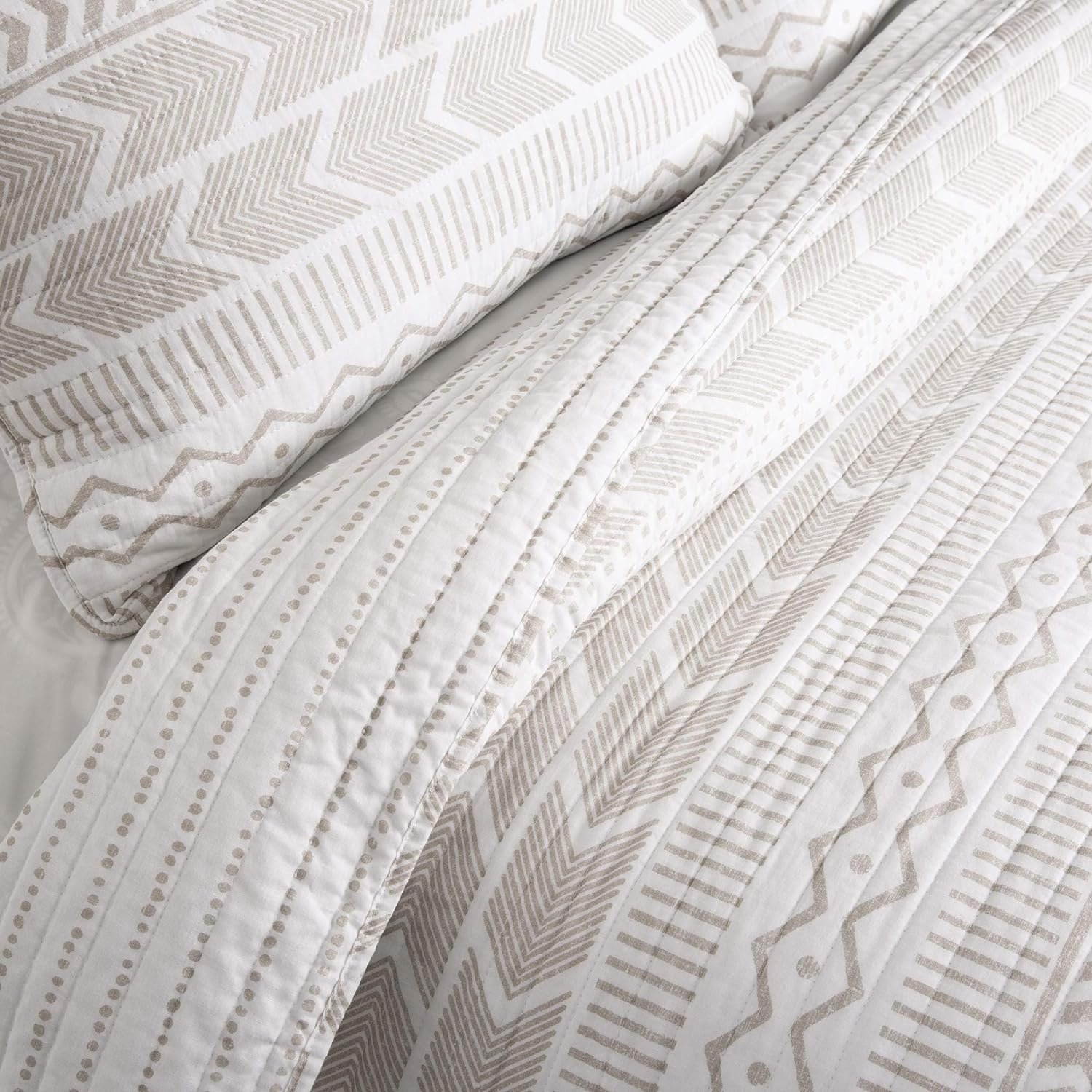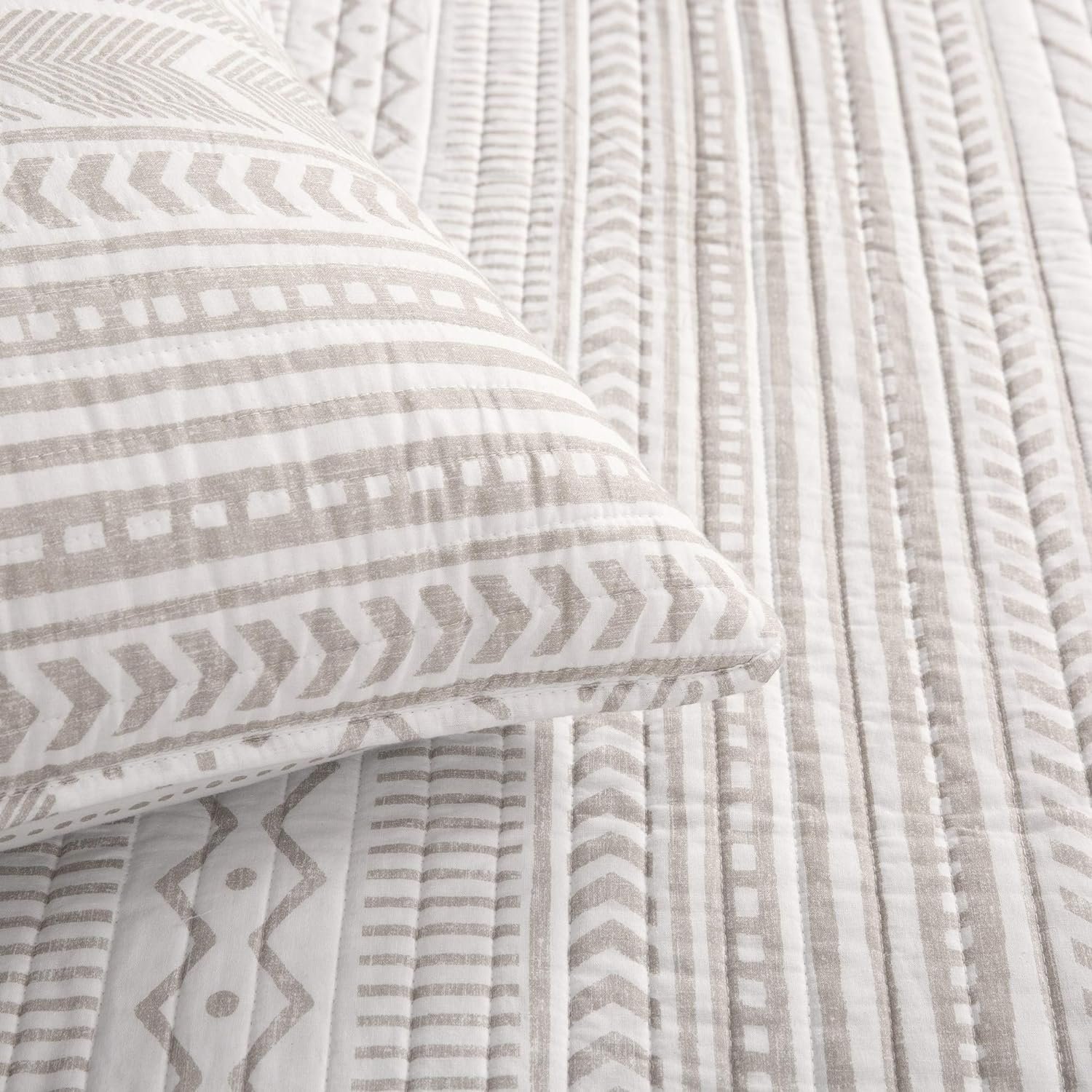 Lush Decor Hygge Geo Pattern Striped 3 Piece Quilt Bedding Set, Full/Queen, Taupe & White