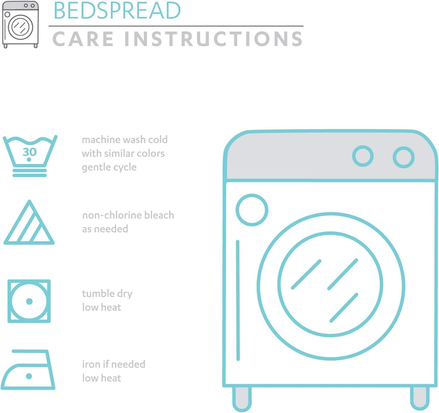 3 piece set includes a queen size bedspread (80”H x 60”W + 30” drop) and 2 matching shams (20”H x 26”W + 2” ruffle).