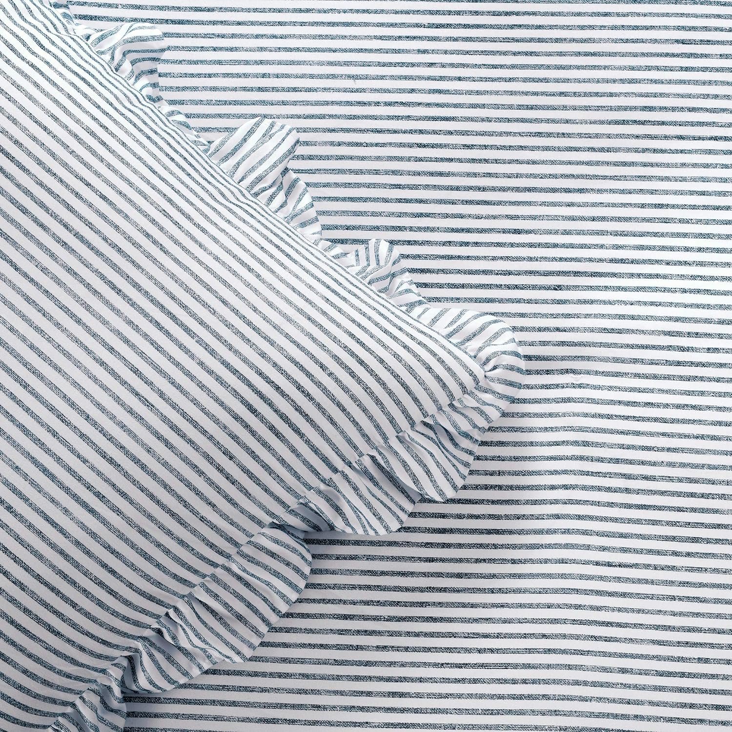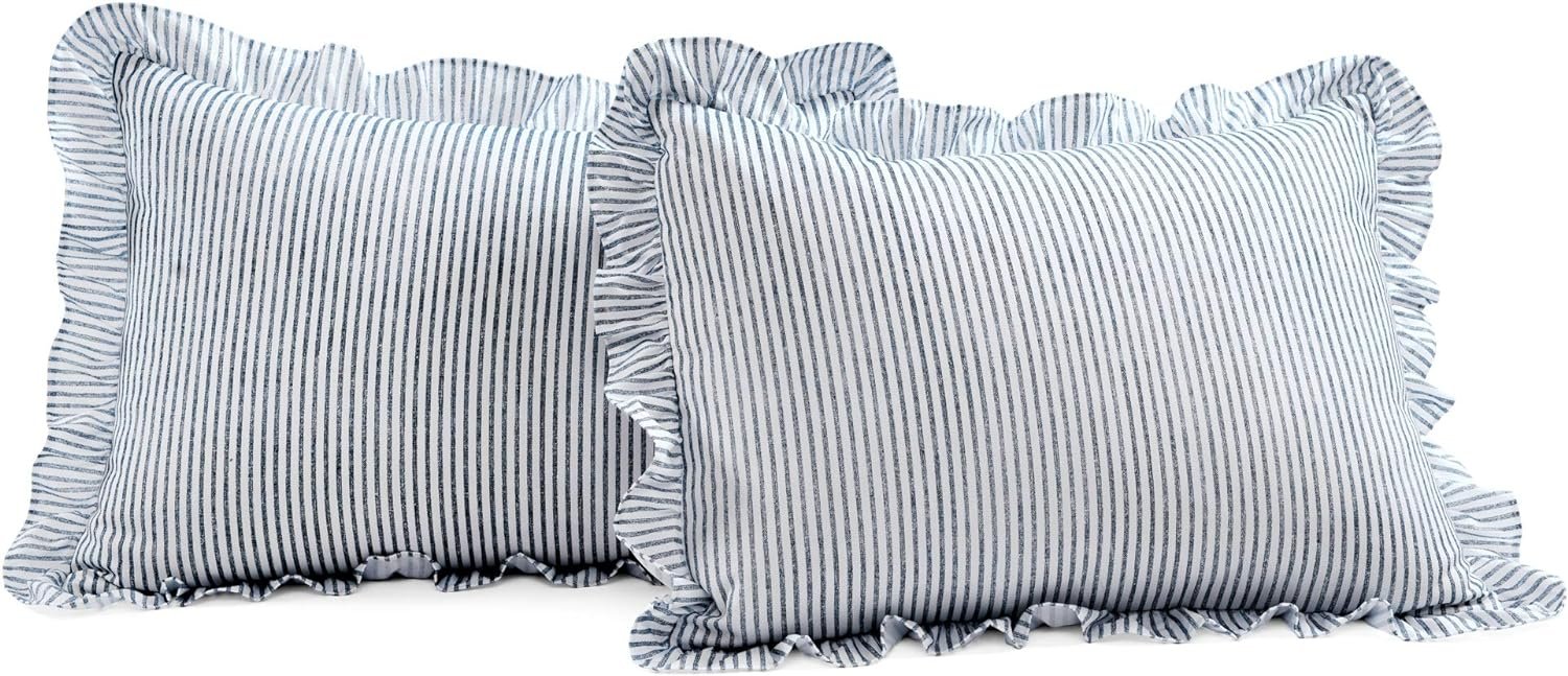 Lush Décor Ticking Stripe Ruffle Skirt bedspread has a long, beautiful ruffled edge detail and is the perfect addition to your farmhouse or Vintage Chic style bedroom decor.