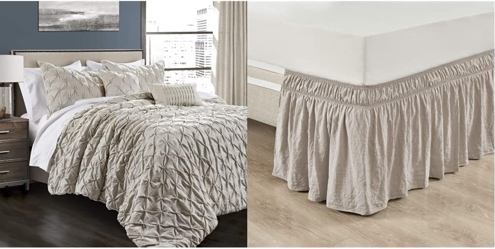 Be the first to review “Lush Decor Ravello Pintuck Vintage Chic Farmhouse Style 5 Piece Comforter Set with Pillow Shams, King, Wheat & Ruched Ruffle Elastic Easy Wrap Around Bedskirt, Queen/King/Cal King, Neutral”