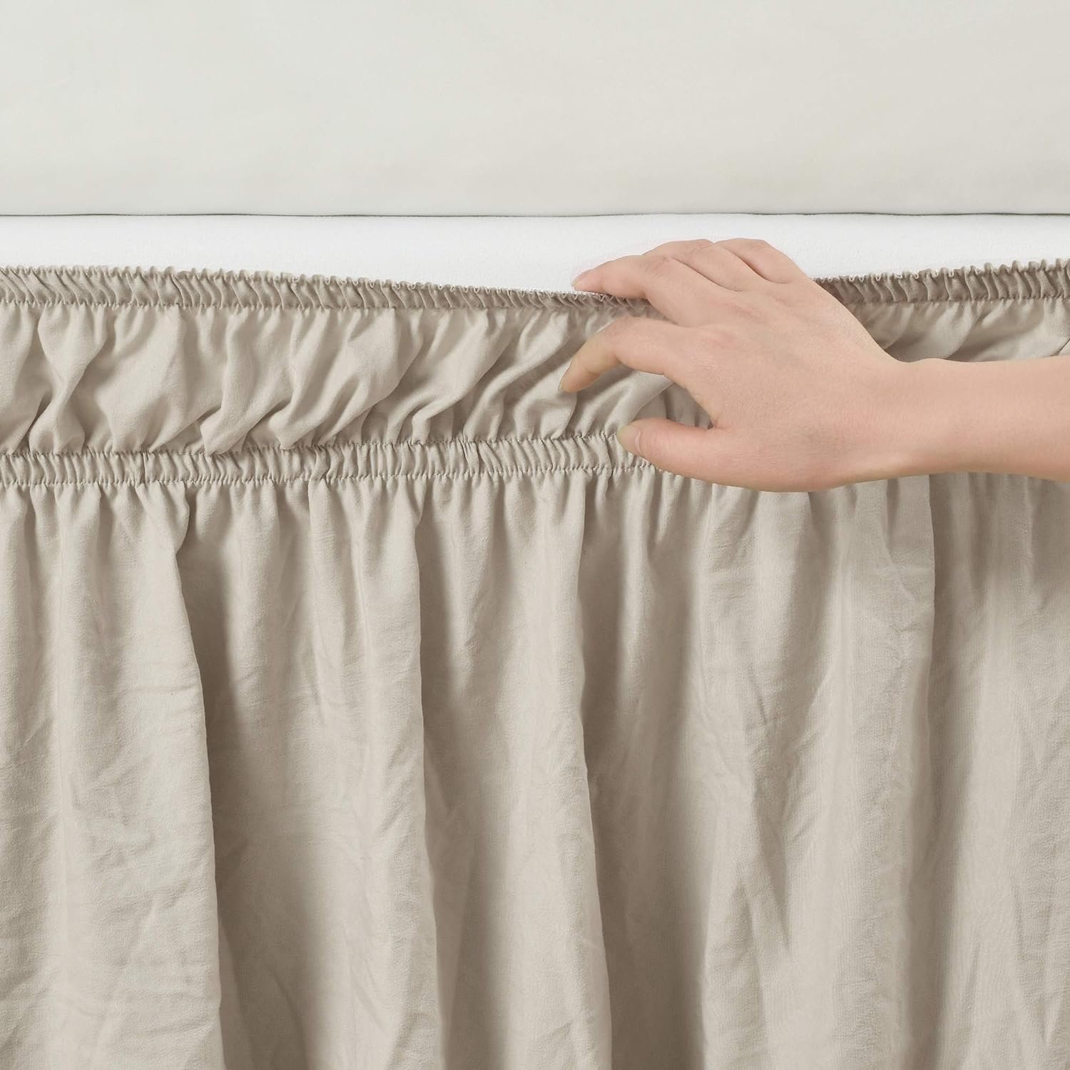 Lush Decor Ruched Ruffle Elastic Easy Wrap Around Bedskirt, Queen/King/Cal King, Neutral