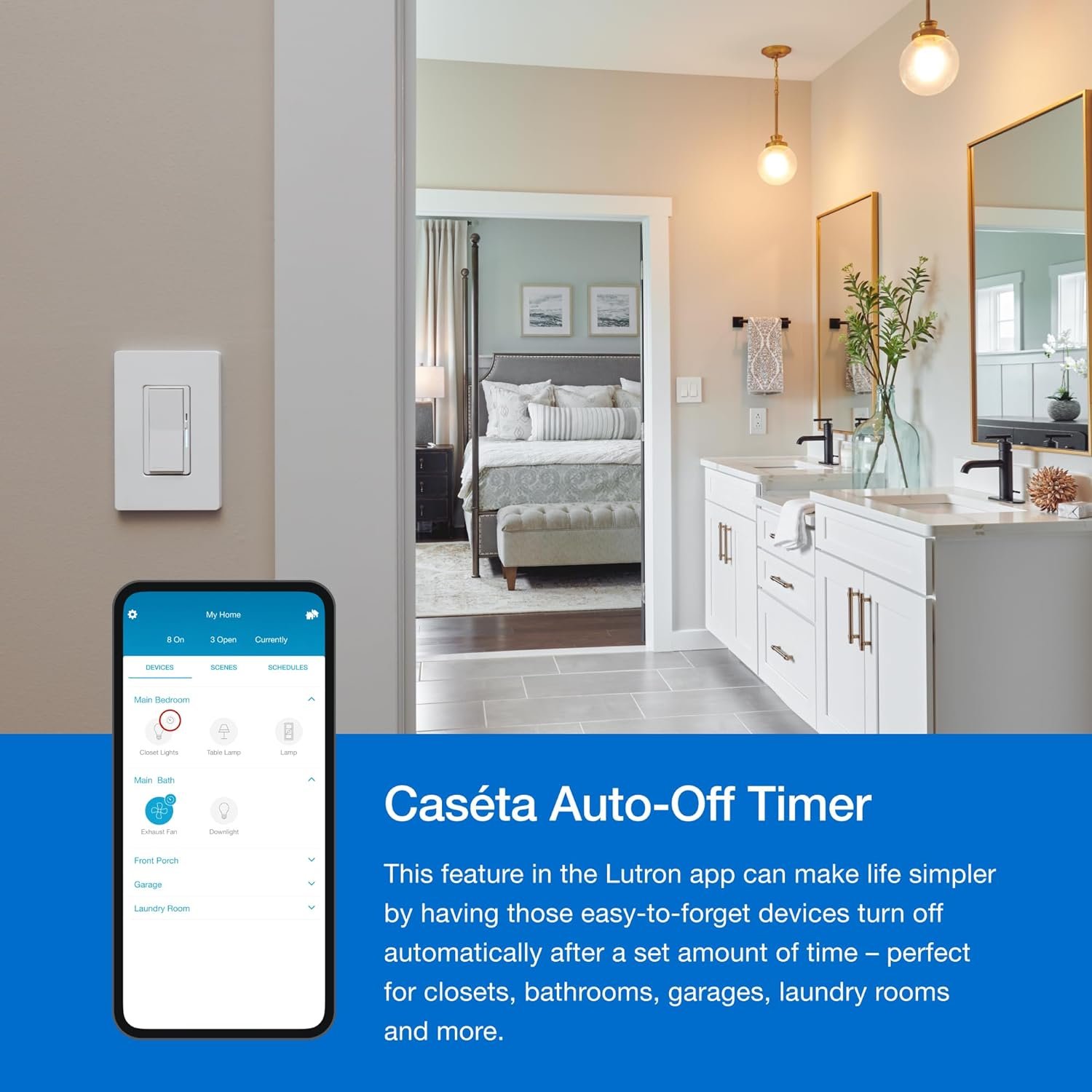 CONTROL YOUR WAY: Caseta puts the smarts in the switch so you can control your lights a variety of ways – via the free Lutron app, with your voice, or at the wall; create schedules to change lights at set times or activate scenes with one touch of button