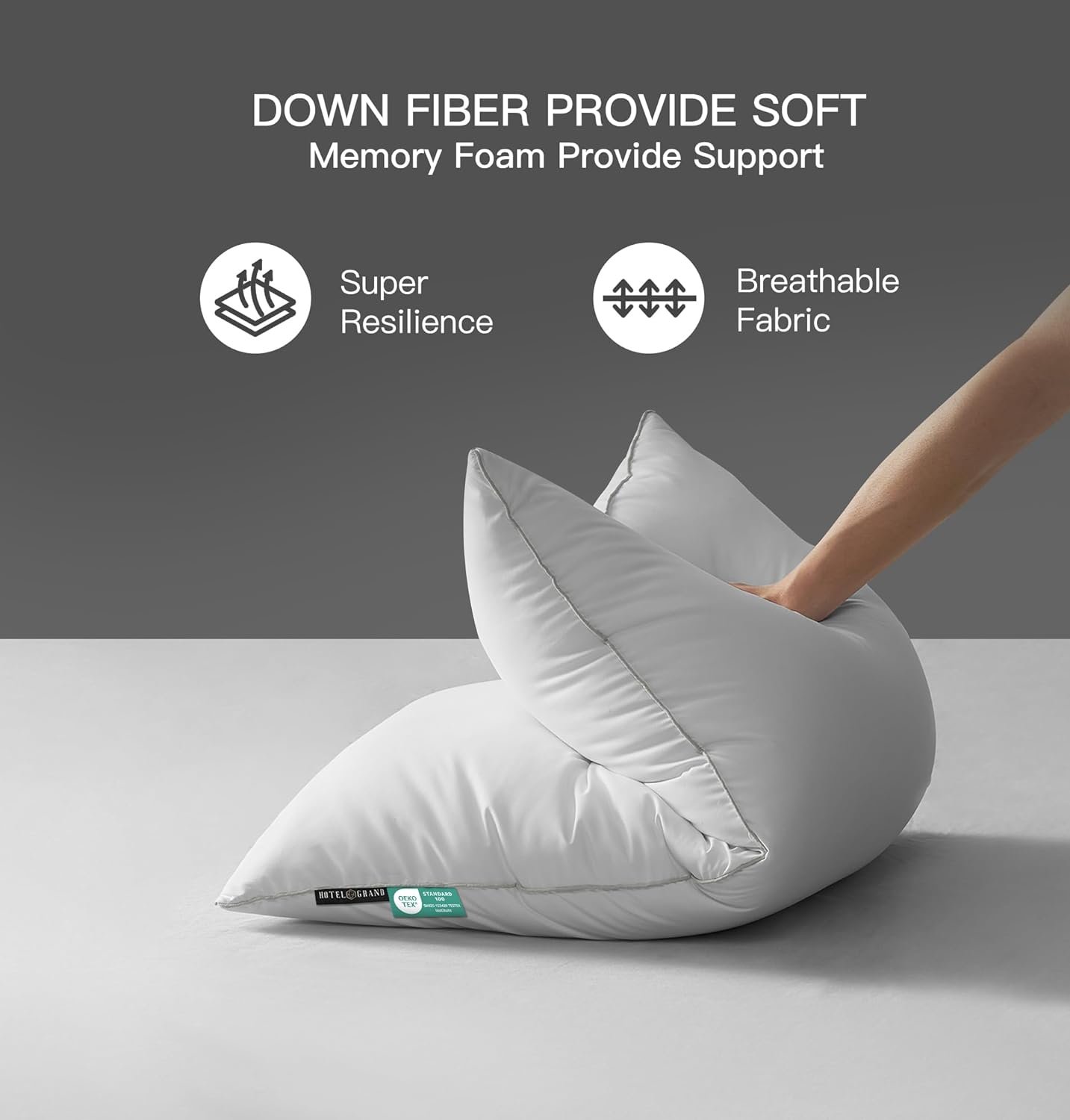 [Luxury Hotel Grand Pillow] White goose feather and down fiber and memory foam blend filled material let you enjoy medium firmness, comfortable and easy to fluff luxury hotel quality pillows . Each queen size pillow measures 20″ x 28″ and king size pillow measures 20″ x 36″ for different size beds.