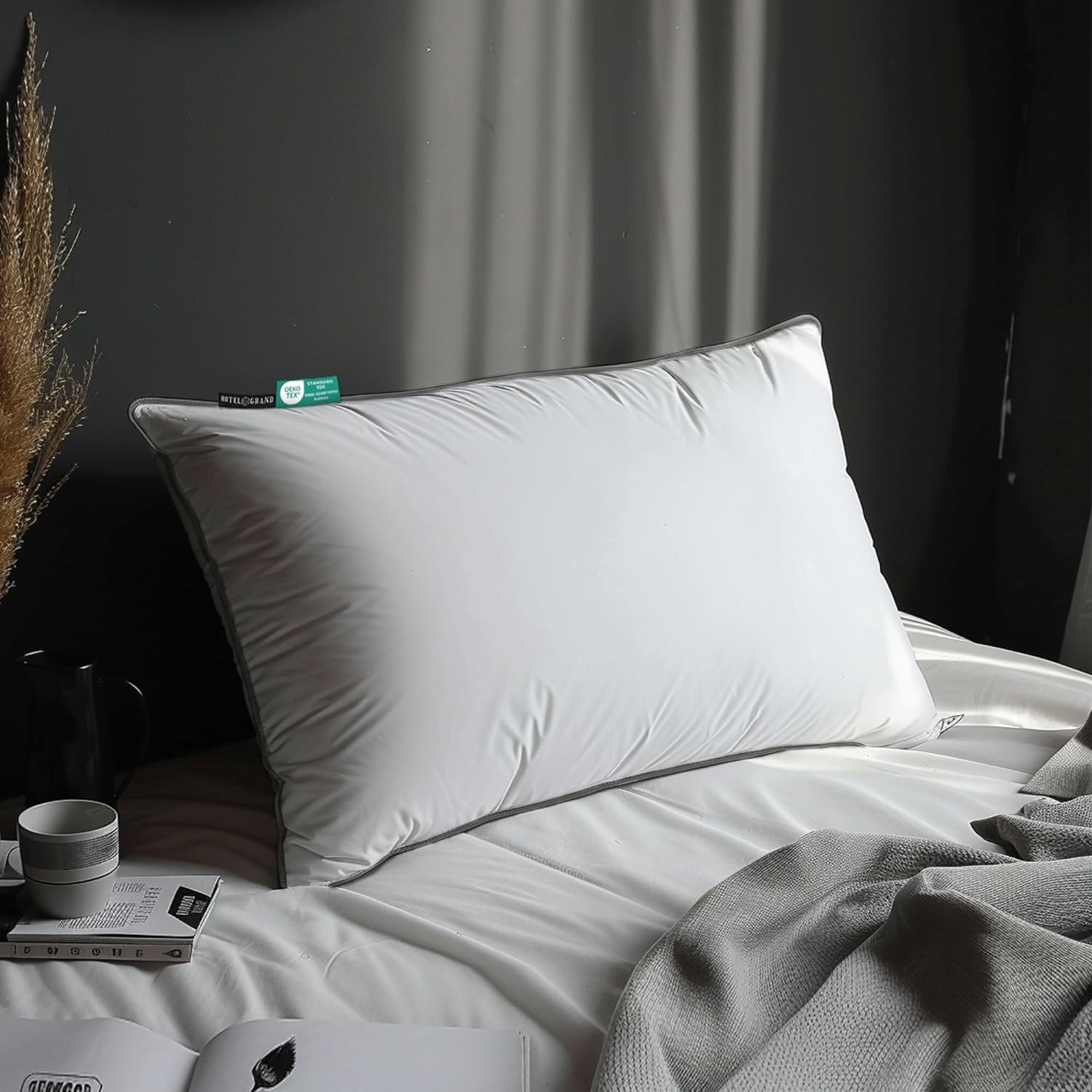[Feather Down Pillow] Our premium fill white feather down fiber is the perfect balance of comfort and relaxing support to gently cradle your neck and head, while letting you sink into deep restful bliss all night long.
