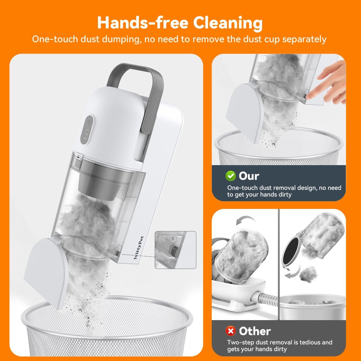 🐱【2.3L Larger Dust Cup & Easy to Clean】Our dog hair vacuum comes with a large dust cup, which is large enough for even large dogs.There’s no need to stop frequently to empty the cup when grooming your pet.The dust cup is so easy to clean – just press the quick release button on the cup and the cup is easily emptied the pet hair