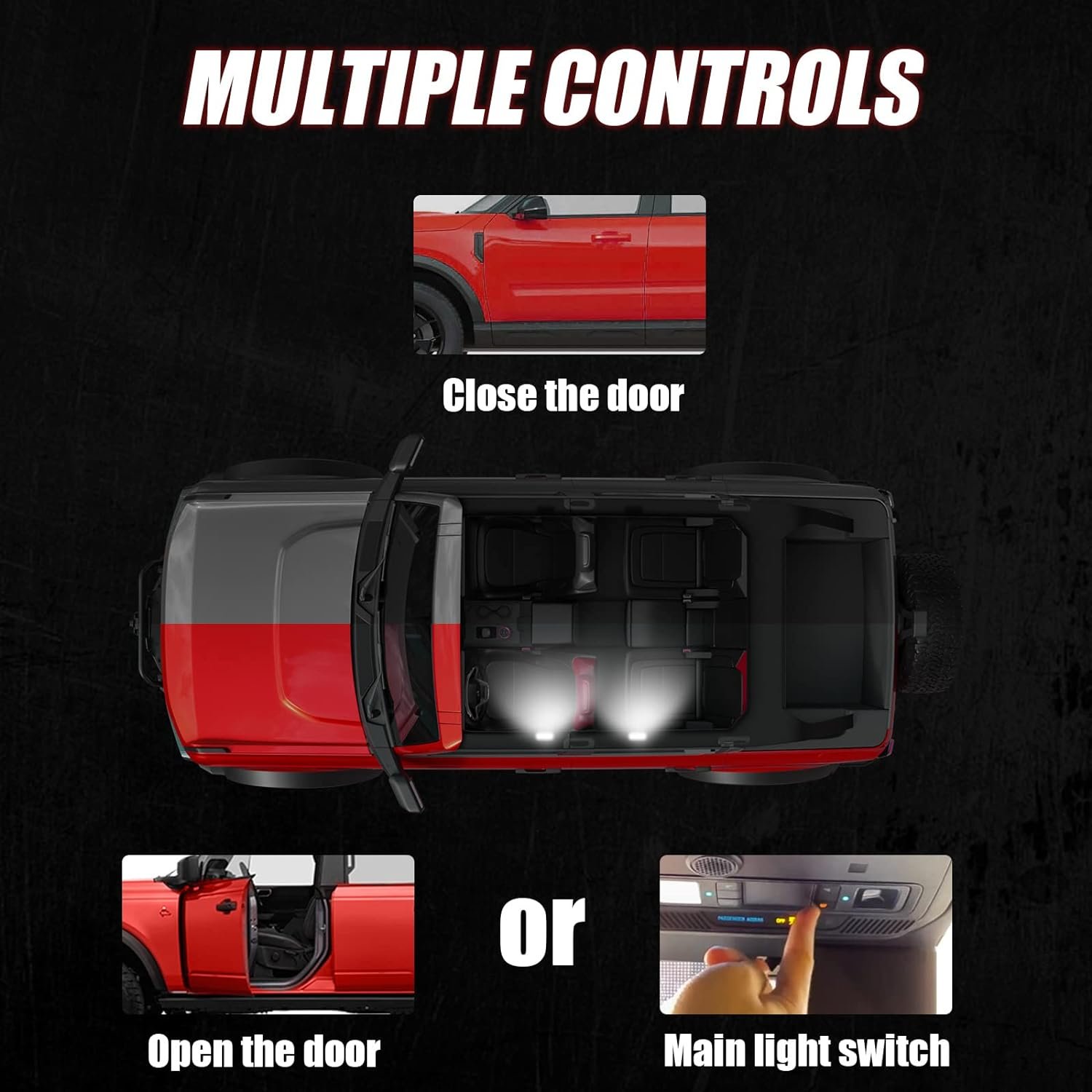 Mabett LED Interior Dome Lights 4Pcs Kit Fit Ford Bronco 2021 2022 2023 2024 Bronco Accessories 2/4 Door Easy Installation Hardtop/Softtop(Not for Sport)
