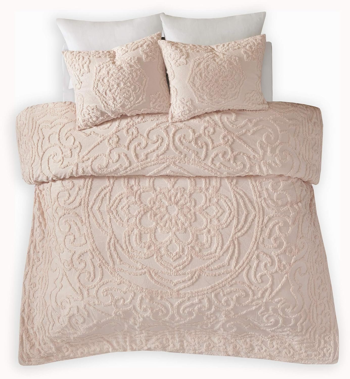 Laetitia Tufted Cotton Chenille Medallion duvet cover provides a soft and alluring update to your bedroom décor.