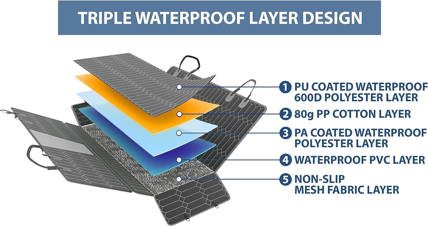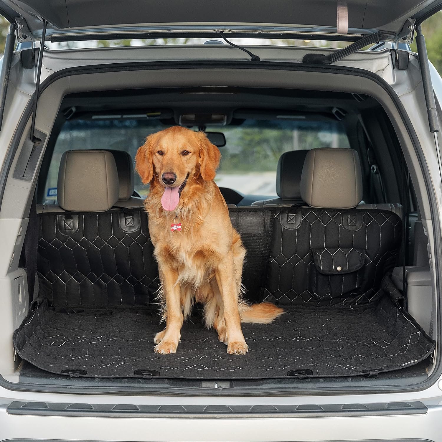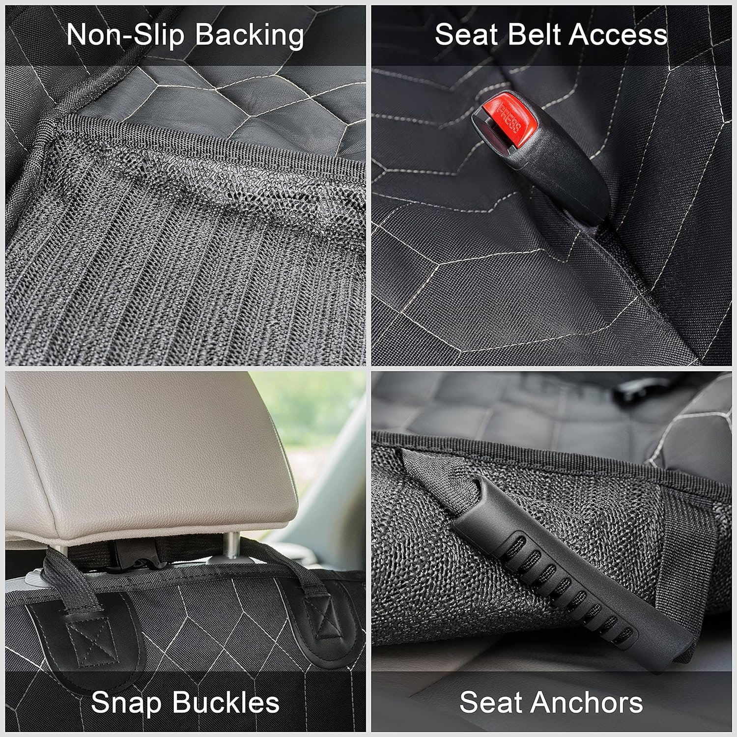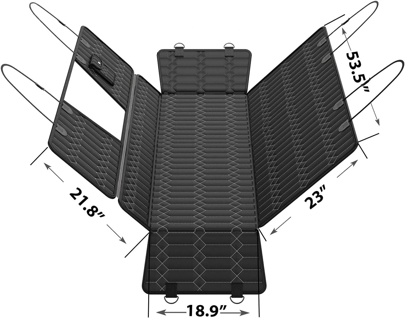 5-Layer Construction; includes 2 waterproof quilted panels of 600D polyester, an 80g PP cotton panel, a waterproof PVC panel, and a non-slip mesh fabric panel. This gives the Magnelex dog seat cover for back seat gripping power on vehicle upholstery and offers your pet stability while riding.