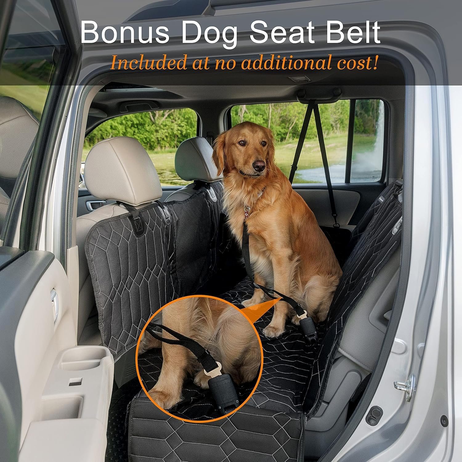Mesh Barrier Window; helps soothe nervous pet travelers. Your puppy, dog or cat will be able to see you at all times without being able to leap from back seat to the front passenger area. With your Magnelex back seat pet cover for dogs, you will also receive a bonus dog seat belt.