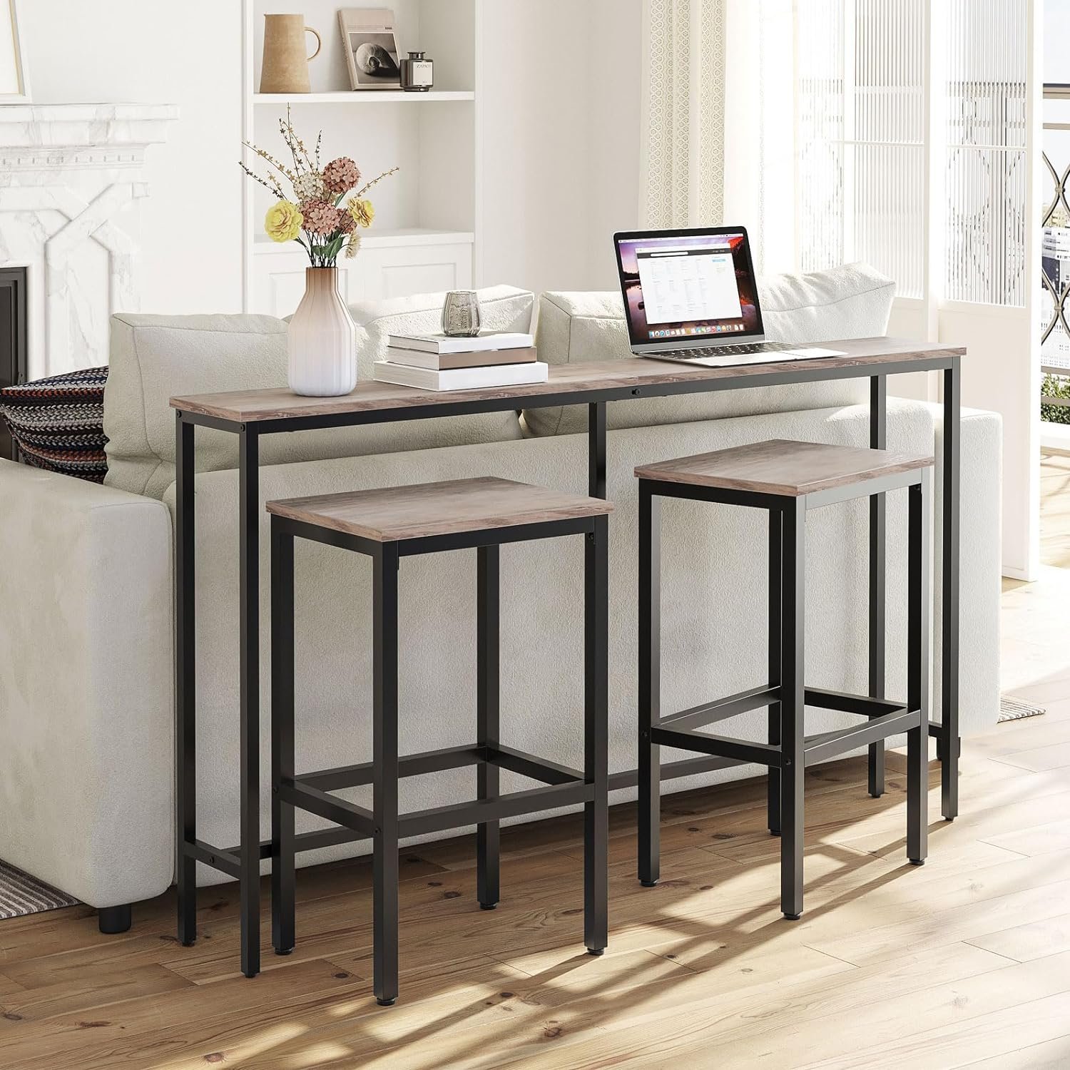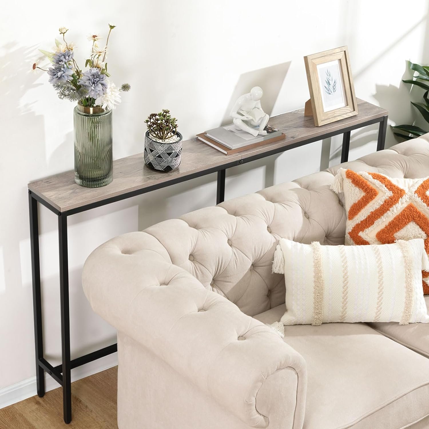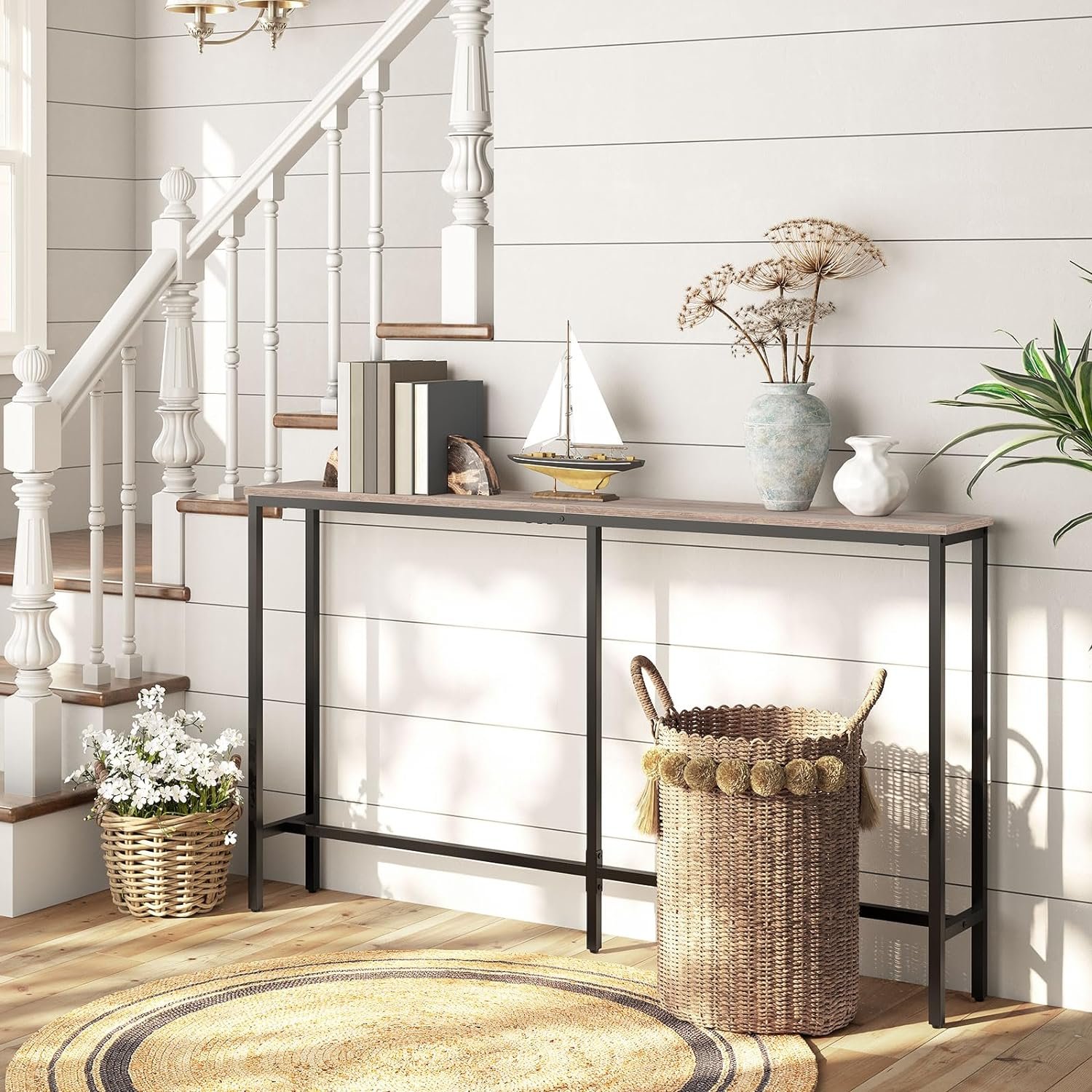 Fashionable Entryway Table: This MAHANCRIS industrial styled console table combines the warmth of vintage wood tone and the sophistication of black metal frame, exuding elegance and rustic atmosphere, always bringing you a bright visual effect