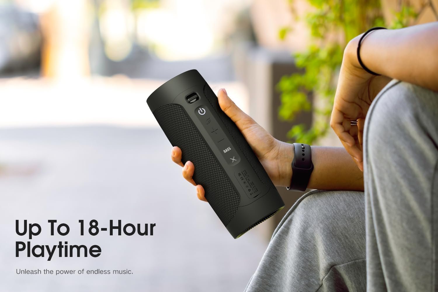 maio Portable Bluetooth Speaker, IP67 Waterproof Portable Wireless Speaker with 30W Loud Stereo Sound, Wireless Stereo Pairing, 18H Playtime, Perfect for Outdoor, Home, Party, and Travel – Black