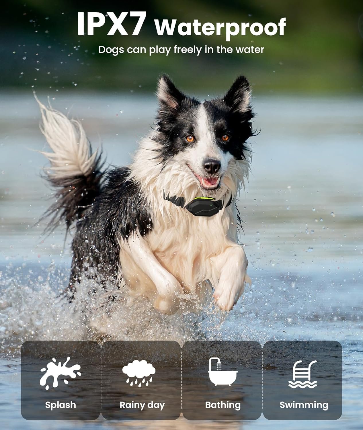 IPX7 Waterproof & Safety: Our shock collar and remote control are designed with totally hermetic technology, the collar receiver and remote control are both IPX7 waterproof, giving you maximum freedom and flexibility for your outdoor and indoor activities. The remote control is individually operated with separate buttons to prevent misuse and accidental shock. Equipped with separate safety switch buttons, allows you to carry it without any fear