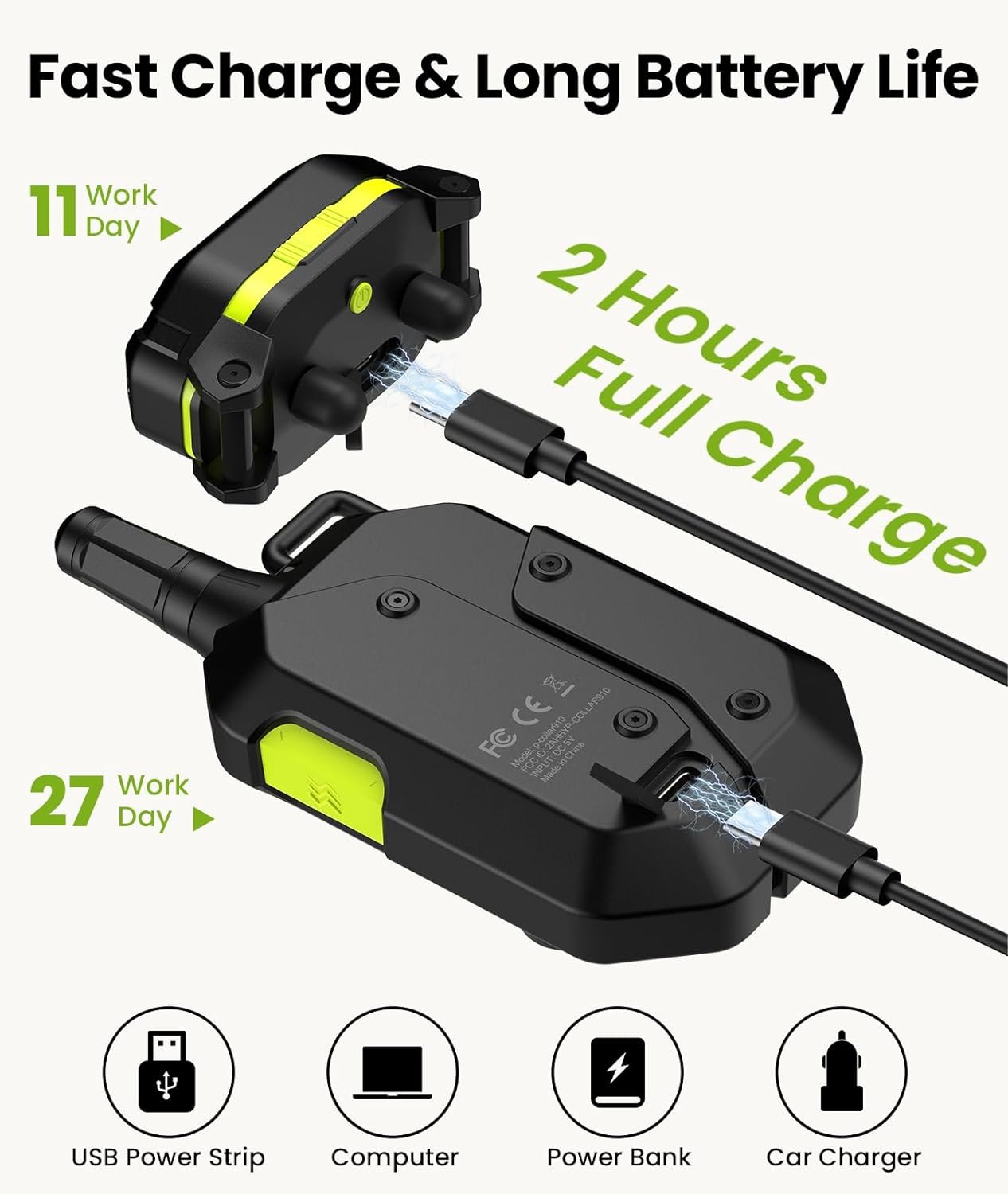 Extra Long Battery Life & Fast Charging: Our electric dog collar and remote control have an extra long working time, up to 11 days for the e collar and 27 days for the remote control. Fast charging via the Type-C port takes just 2 hours to fully charge. You can easily charge them with a car charger, power bank or laptop. You don’t need to worry about power when you go running or camping with your dog