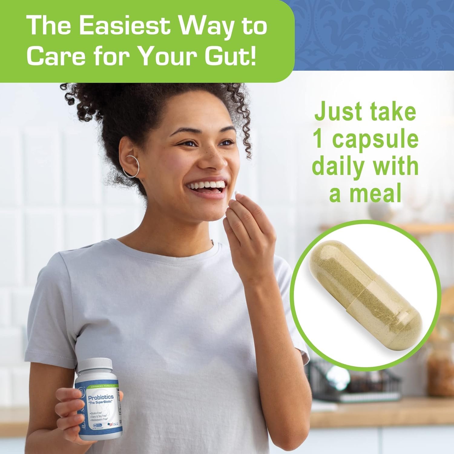 Daily Probiotics for Women – With Lactobacillus acidophilus, L. plantarum, L. salivarius, and L. gasseri to help soothe digestive discomfort. This probiotics for women for digestive health also combats inflammation and supports nutrient absorption.