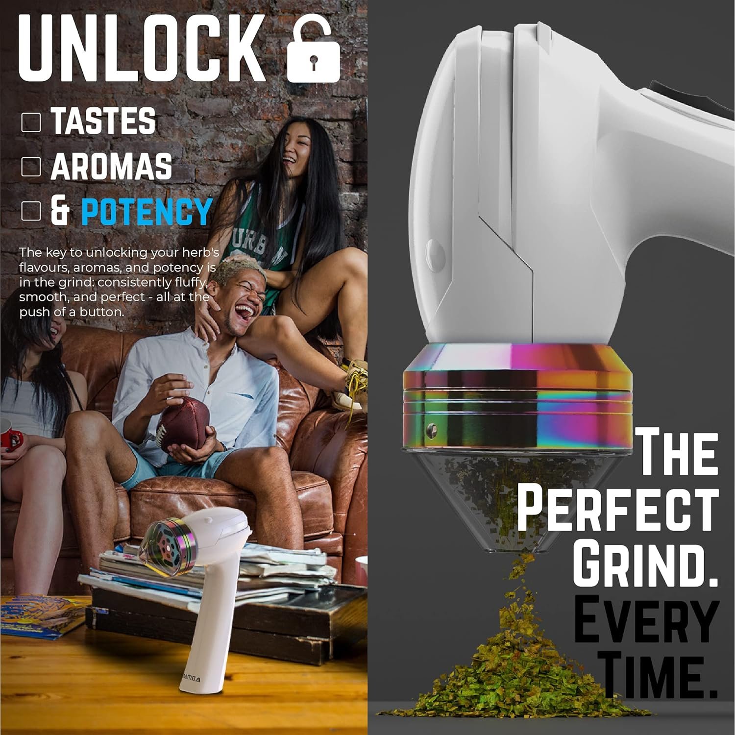 Rapid Electric Grinding – In the Palm of Your Hand Mamba portable spice & herb grinder headMamba portable spice & herb grinder head Holds up to 1g of Herbs