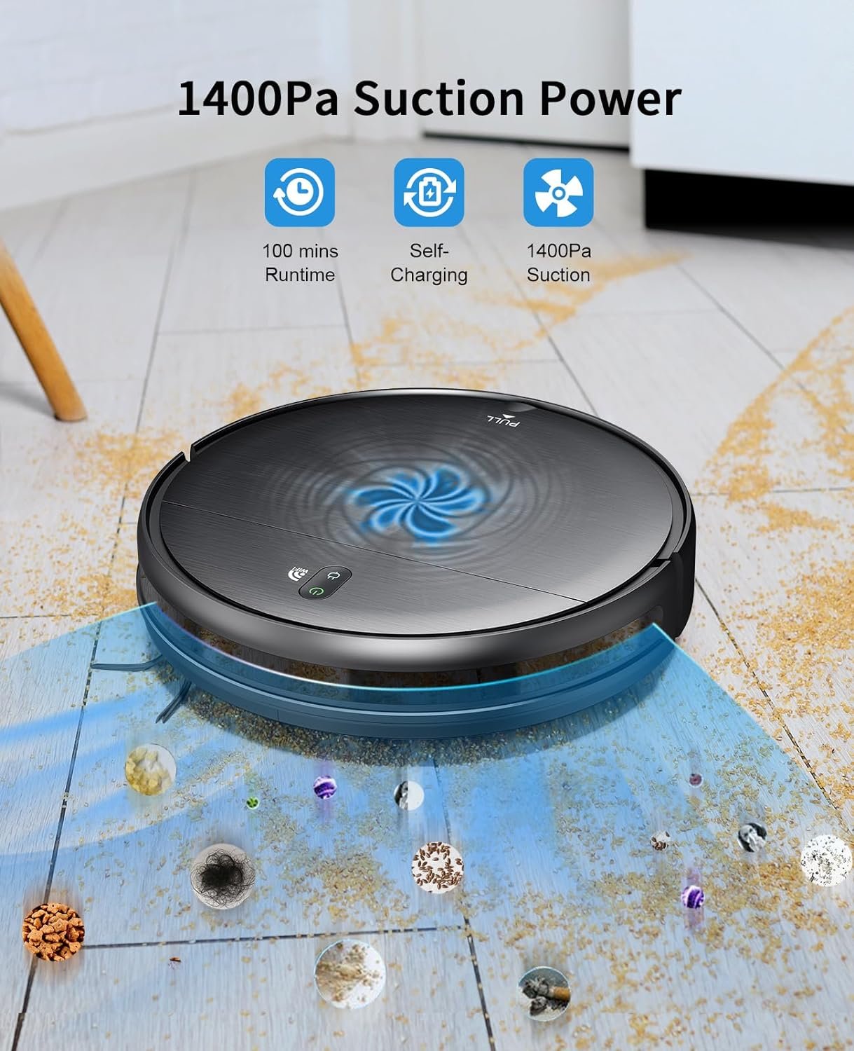 🏠[2-In-1 Mopping Robot Vacuum]: The 1400Pa mopping robot vacuum cleaner combo can quickly remove dust, paper scraps, and other garbage. Wet mop function and 230ml electric control water tank, even penetration, suitable for all hard floors, such as laminate, ceramic tiles, granite, parquet, etc.