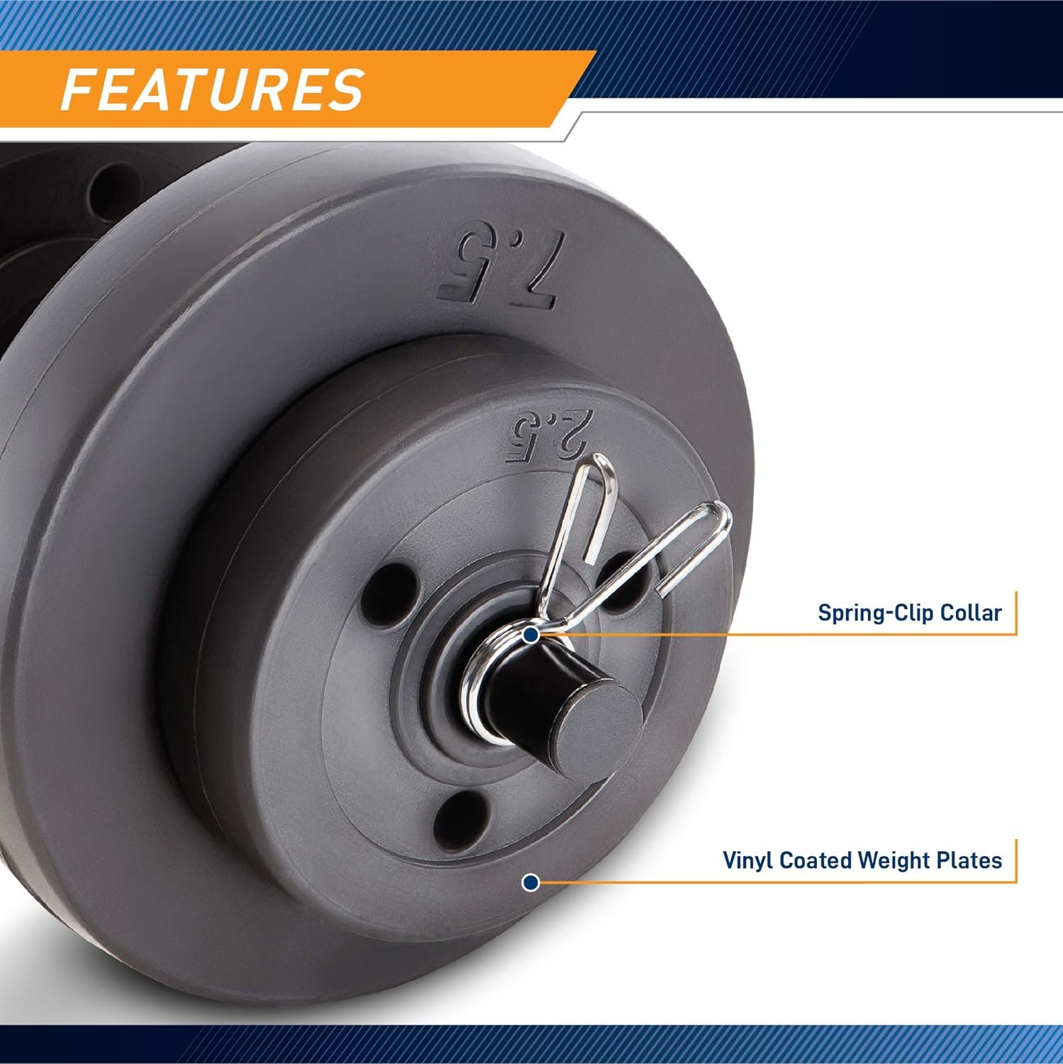 SPRING-CLIP COLLARS – Forget about unstable, shifting plates! This dumbbell set includes four spring-clip collars that ensures secure attachment of the weight plates onto the end of the bar to keep them from moving while you’re performing exercises.