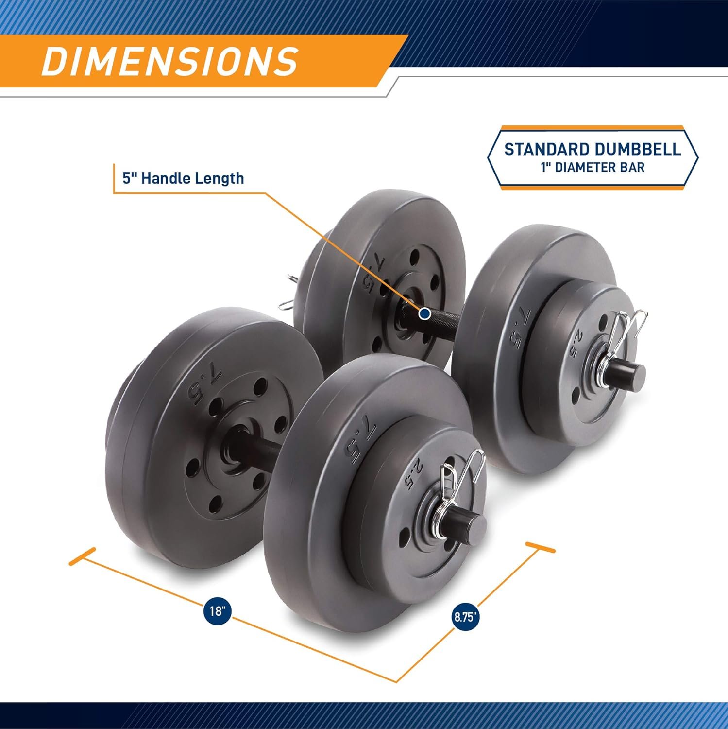 TWO DIFFERENT PLATE WEIGHTS – This gym gear includes four 2.5-pound plates, four 7.5-pound standard-size plates, and two 14-inch dumbbell handles. The various weight options make the set ideal for anyone looking for a reliable exercise equipment.
