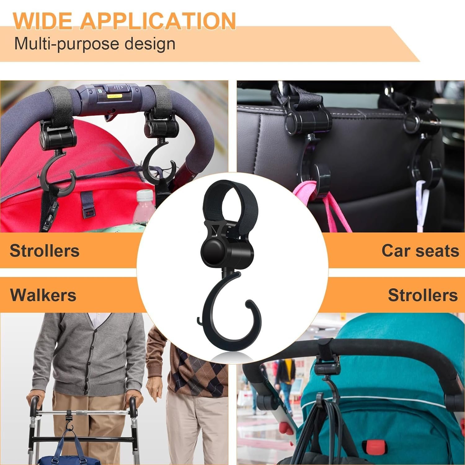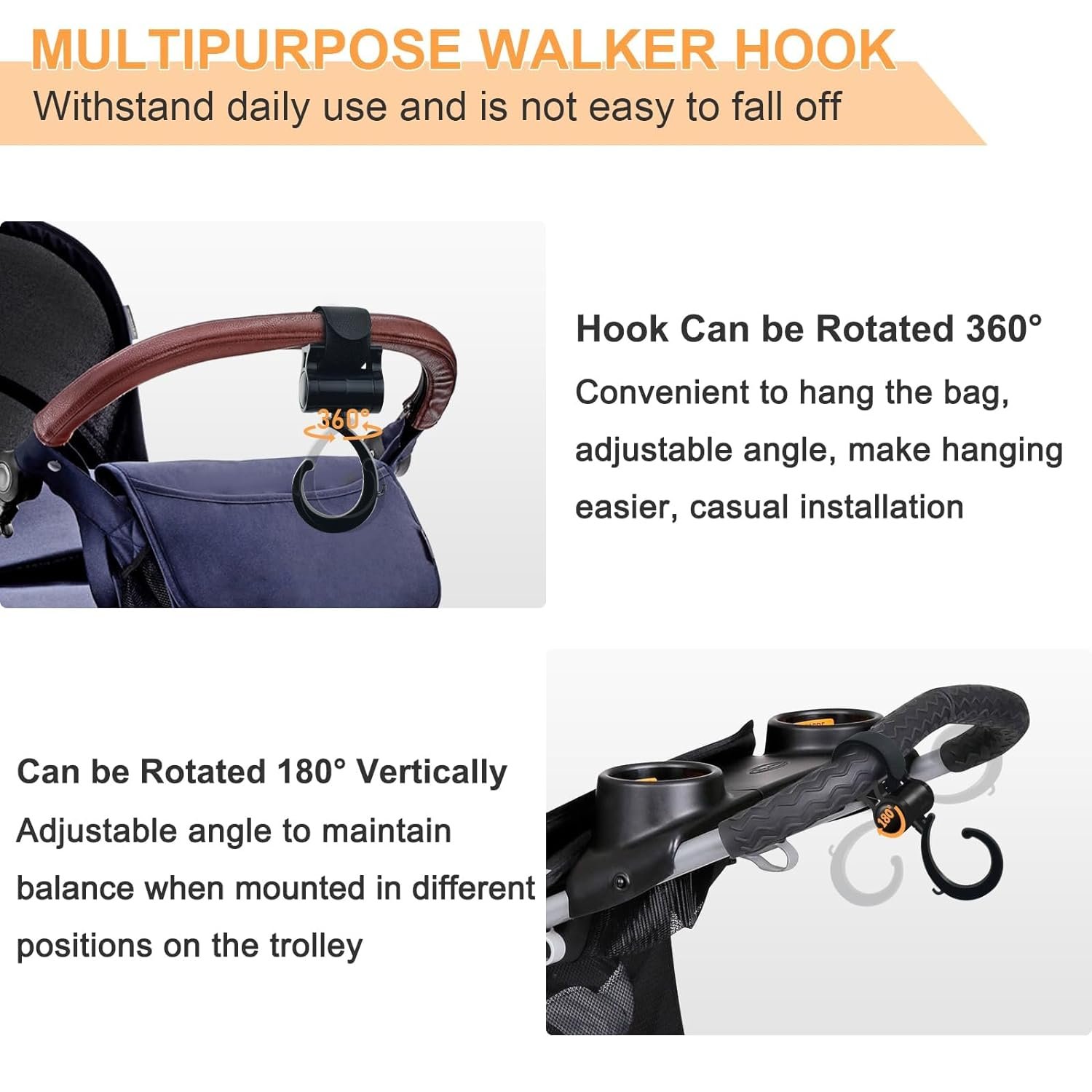 ❤️ Free Your Hands – Walker hook hanging with adjustable, sturdy non-slip strap and 360° rotation function, can be easily applied to hanging bags, shopping bags and other small items, easy to put on and take items. Make your shopping, life and traveling easier.
