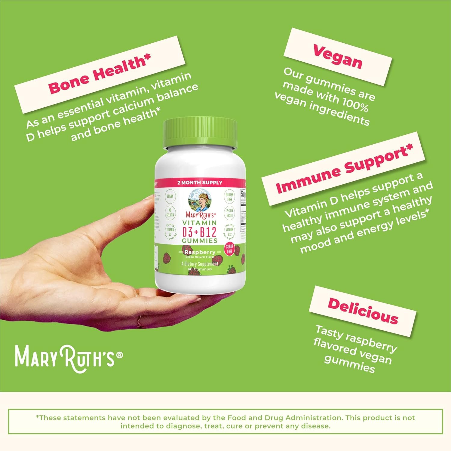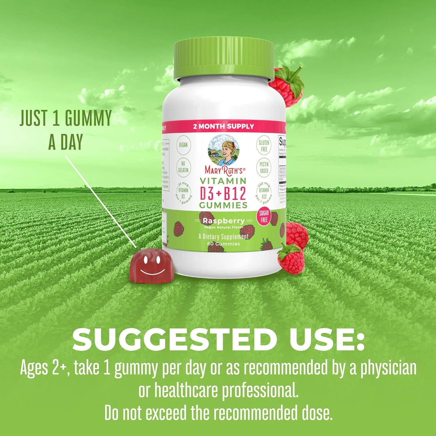 Zero Calories & Sugar Free: 1000 IUs of plant-based Vitamin D3 and 250 mcg of Vitamin B12 per serving, 60 Day Supply.